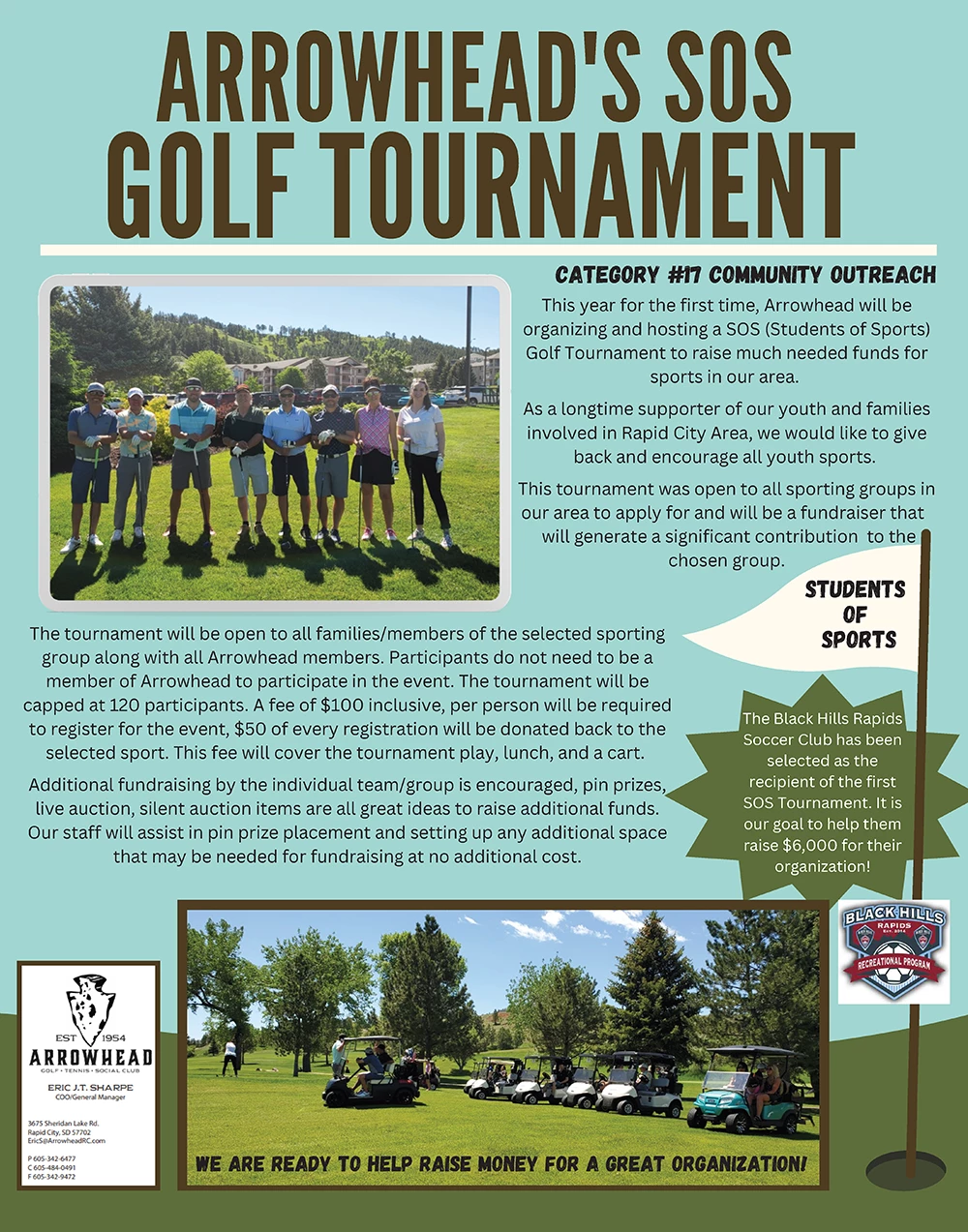 This tournament was open to all sporting groups in our area to apply for and will be a fundraiser that will generate a significant contribution to the chosen group. The tournament will be open to all families/members of the selected sporting group along with all Arrowhead members. Participants do not need to be a member of Arrowhead to participate in the event. The tournament will be capped at 120 participants. A fee of $100 inclusive, per person will be required to register for the event, $50 of every registration will be donated back to the selected sport. This fee will cover the tournament play, lunch, and a cart.