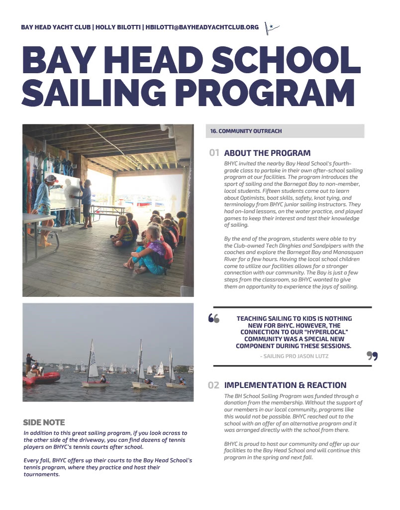 The BH School Sailing Program was funded through a donation from the membership. Without the support of our members in our local community, programs like this would not be possible. BHYC reached out to the school with an offer of an alternative program and it was arranged directly with the school from there.