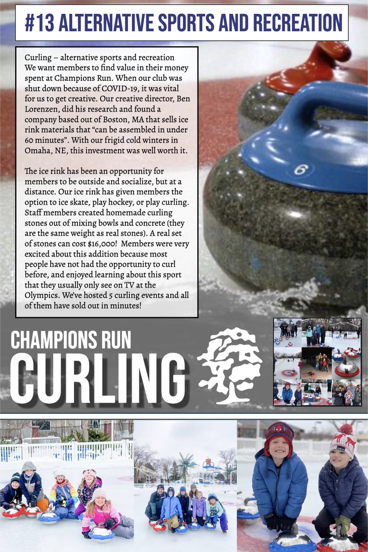 We want members to find value in their money spent at Champions Run. When our club was shut down because of COVID-19, it was vital for us to get creative. Our creative director, Ben Lorenzen, did his research and found a company based out of Boston, MA that sells ice rink materials that “can be assembled in under 60 minutes”. With our frigid cold winters in Omaha, NE, this investment was well worth it.