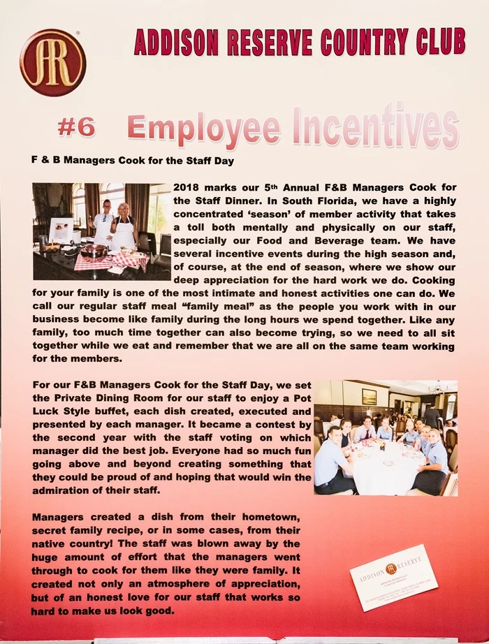 Employee appreciation is the cornerstone of our successful club operation. Our staff "family" work tirelessly to ensure that our members receive the ultimate in service throughout the year. During our peak season which runs from November through May, staff members put in additional hours on a consistent basis to accomplish this goal. As the main season winds down we have an opportunity for managers to show their appreciation for their staff's service and to solidify the "team spirit." This VERY popular event is just one way for staff to be recognized for their efforts; those very efforts that enhance our members' experiences!