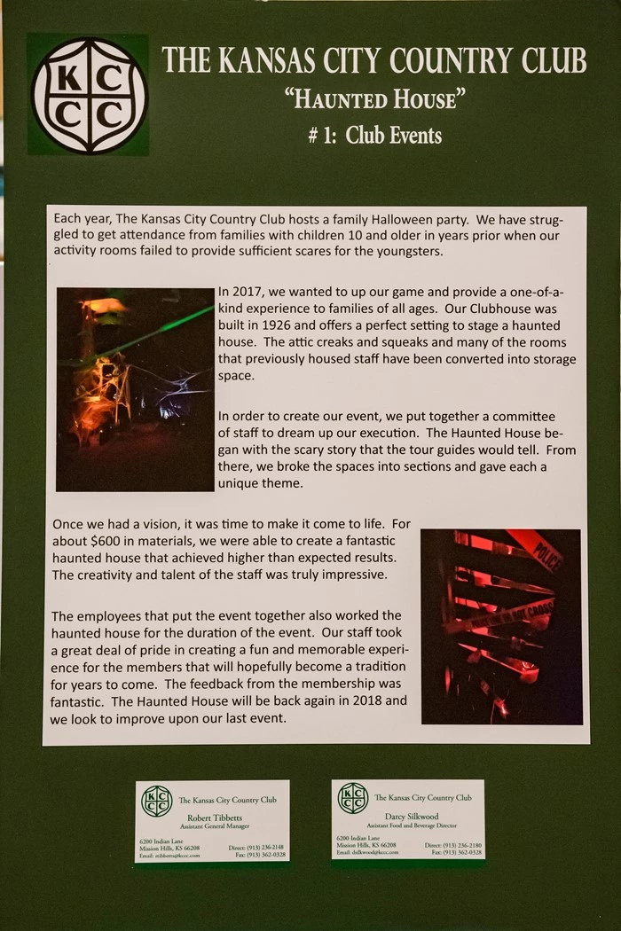 Each year, The Kansas City Country Club hosts a family Halloween party. We have struggled to get attendance from families with children 10 and older in years prior when our activity rooms failed to provide sufficient scares for the youngsters.
