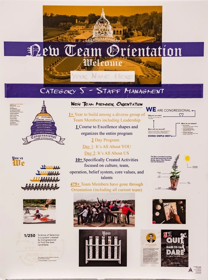 In the past Congressional Country Club had a traditional orientation; on your first day new team members would sit in one of our meeting rooms and review the handbook page by page which encompassed rules and regulations of the Club. Typical reactions included excessive coffee drinking, boredom, fear, agitation, and concern. Is that what orientation should be all about?