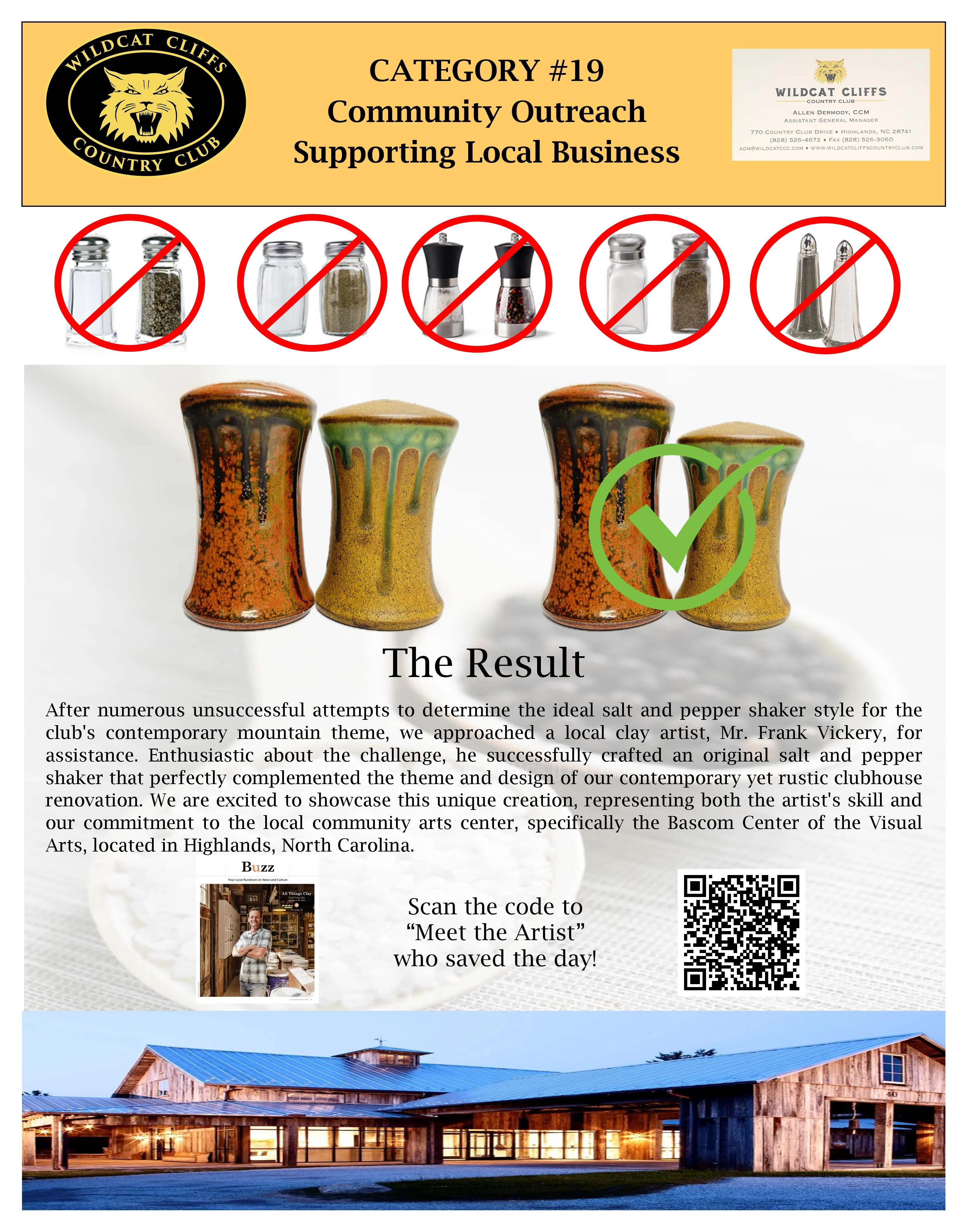 The unique and personalized style of the salt and pepper shakers has created a buzz around the club in appreciation and support for the local business, The Bascom Center of the Visual Arts.