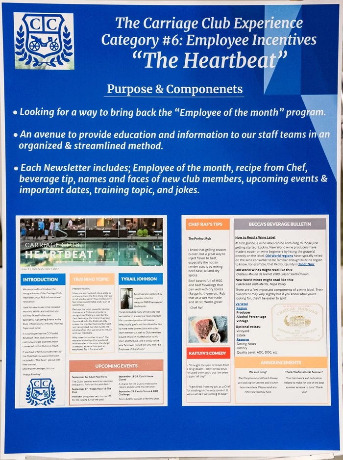 The Food and Beverage management team has long been considering an opportunity to bring back the “Employee of the month” program. We wanted an avenue to incorporate this program that would be intriguing, well-received, and had the potential for longevity. We currently have a monthly publication for our membership (as many clubs do), and we utilized that to come up with the idea for a monthly publication for the staff, an internal newsletter if you will.