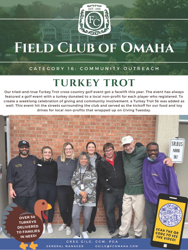 Our tried-and-true Turkey Trot cross country golf event got a facelift this year. The event has always featured a golf event with a turkey donated to a local non-profit for each player who registered. To create a weeklong celebration of giving and community involvement, a Turkey Trot 5k was added as well. This event hit the streets surrounding the club and served as the kickoff for our food and toy drives for local non-profits that wrapped up on Giving Tuesday.