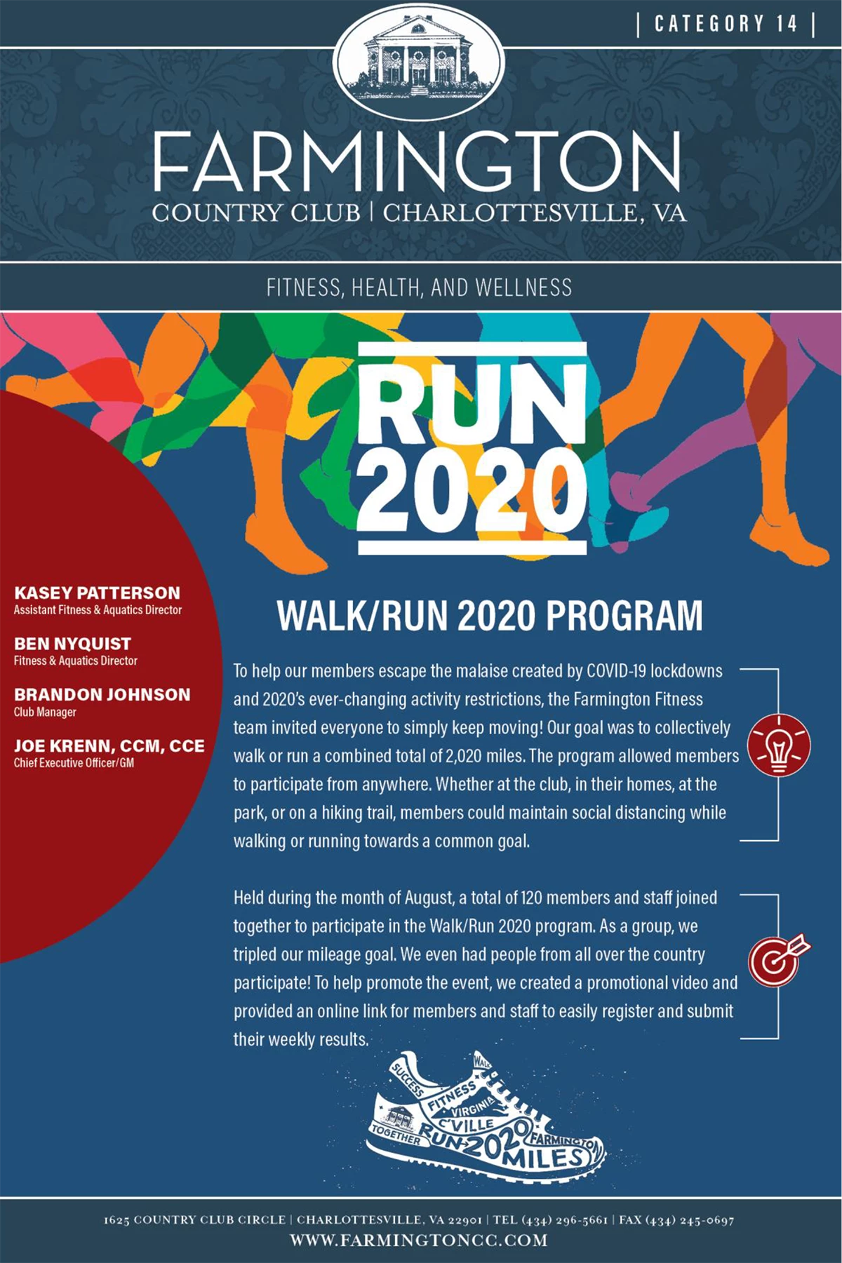 To help our members escape the malaise created by COVID-19 lockdowns and 2020’s ever-changing activity restrictions, the Farmington Fitness team invited everyone to simply keep moving by participating in our Walk/Run 2020 program! Our goal was to collectively walk or run a combined total of 2,020 miles. The program allowed members to participate from anywhere. Whether at the club, in their homes, at the park, or on a hiking trail, members could maintain social distancing while walking or running towards a common goal.