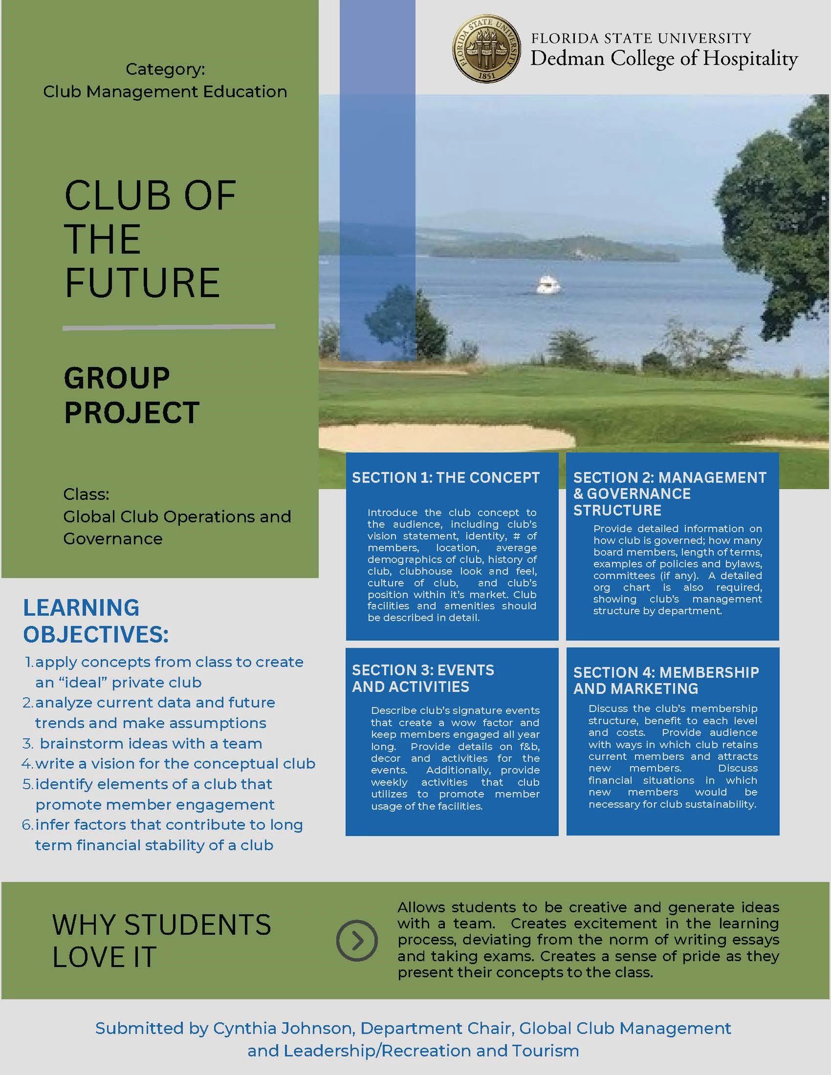 This is the final project for the Club Operations and Governance class. Students apply concepts learned from class as a group to a "club of the future" concept and present to the class.