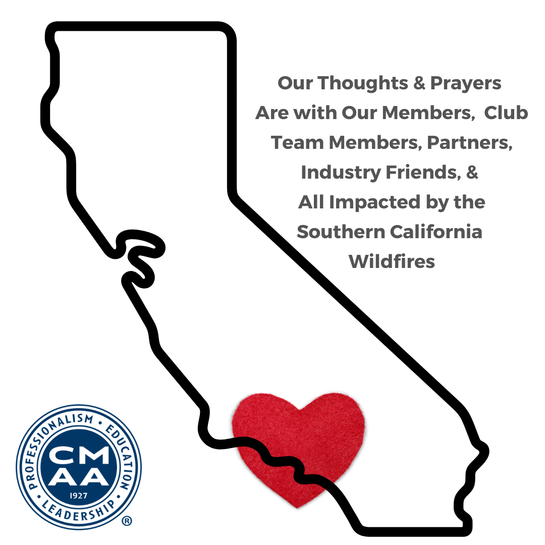 CMAA and The Club Foundation extend their support to all those affected by the Southern California wildfires. To aid in recovery efforts, both organizations have pledged $10,000 each to assist the Golden State Chapter in helping individuals in the club community rebuild their homes and lives. CMAA members can join the effort and contribute directly using the established fund.