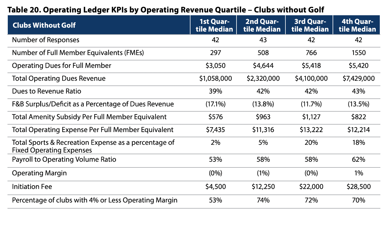 It is important to note that not every club is expected to fall into the top quartile for operating revenue. Success is defined by how well a club uses its resources to deliver value to members, not by how it compares to others in absolute terms.
