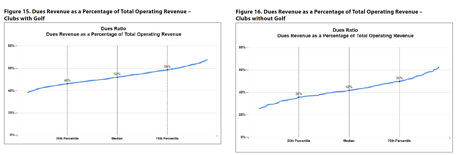 One of the most important KPIs for evaluating this alignment is the Dues to Operating Revenue Ratio, illustrated in Figures 15 and 16 for clubs with and without golf, respectively.