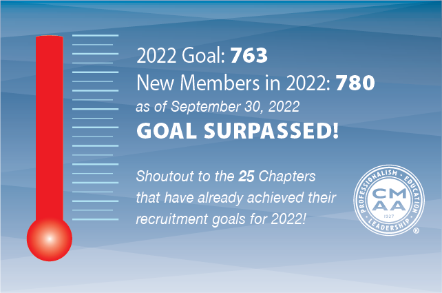 The 2022 New Member Recruitment Contest ends on December 31. CMAA is having an incredible recruitment year! Has your Chapter met its goal? Keep on recruiting! Remember, the winning Chapters in each size category win a $2,000 Education Grant from The Club Foundation. Let’s meet and exceed those goals!
