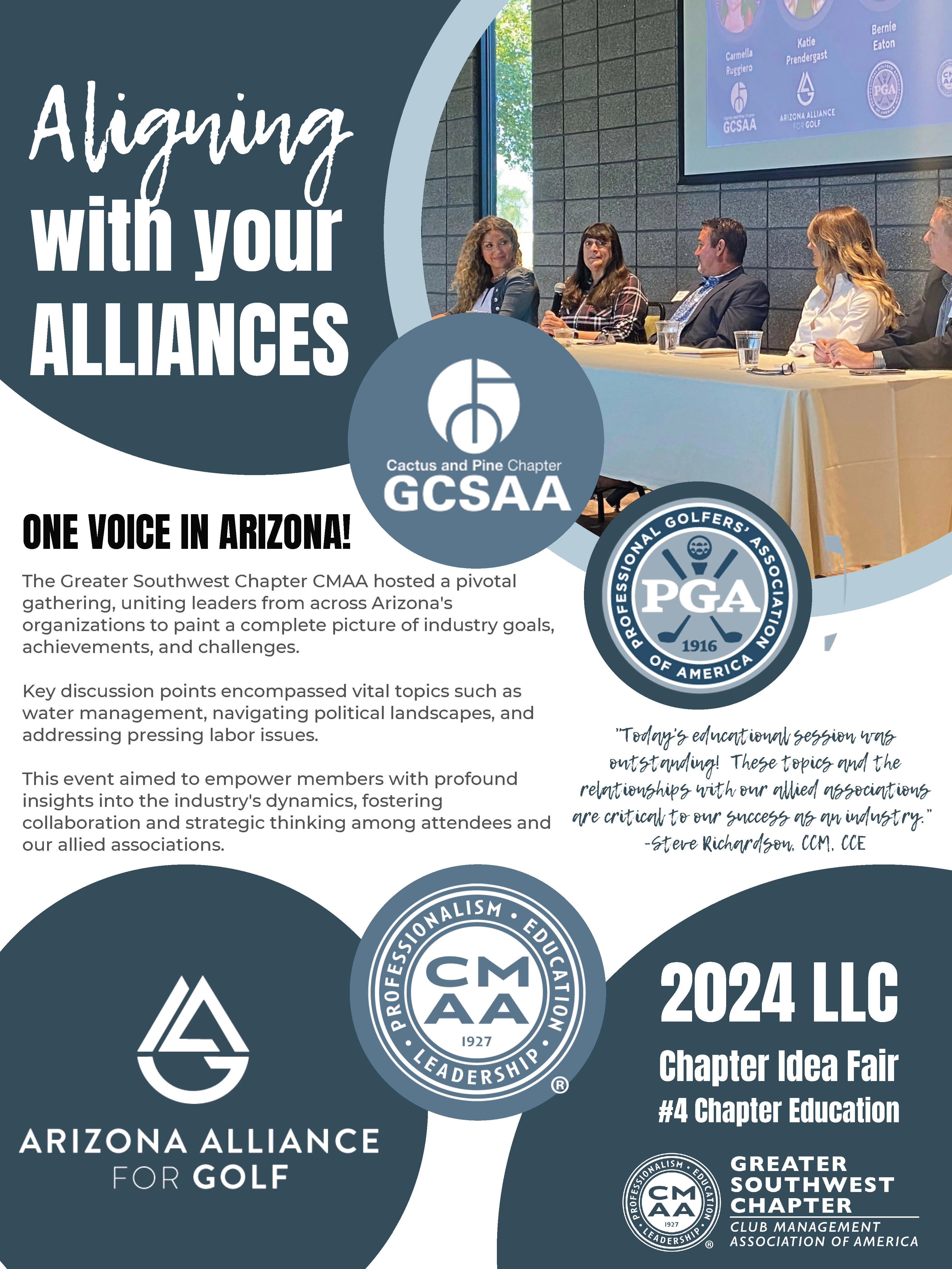 The Greater Southwest Chapter CMAA hosted a pivotal gathering, uniting leaders from across Arizona's organizations to paint a complete picture of industry goals, achievements, and challenges. Key discussion points encompassed vital topics such as water management, navigating political landscapes, and addressing pressing labor issues. This event aimed to empower members with profound insights into the industry's dynamics, fostering collaboration and strategic thinking among attendees and our allied associations.