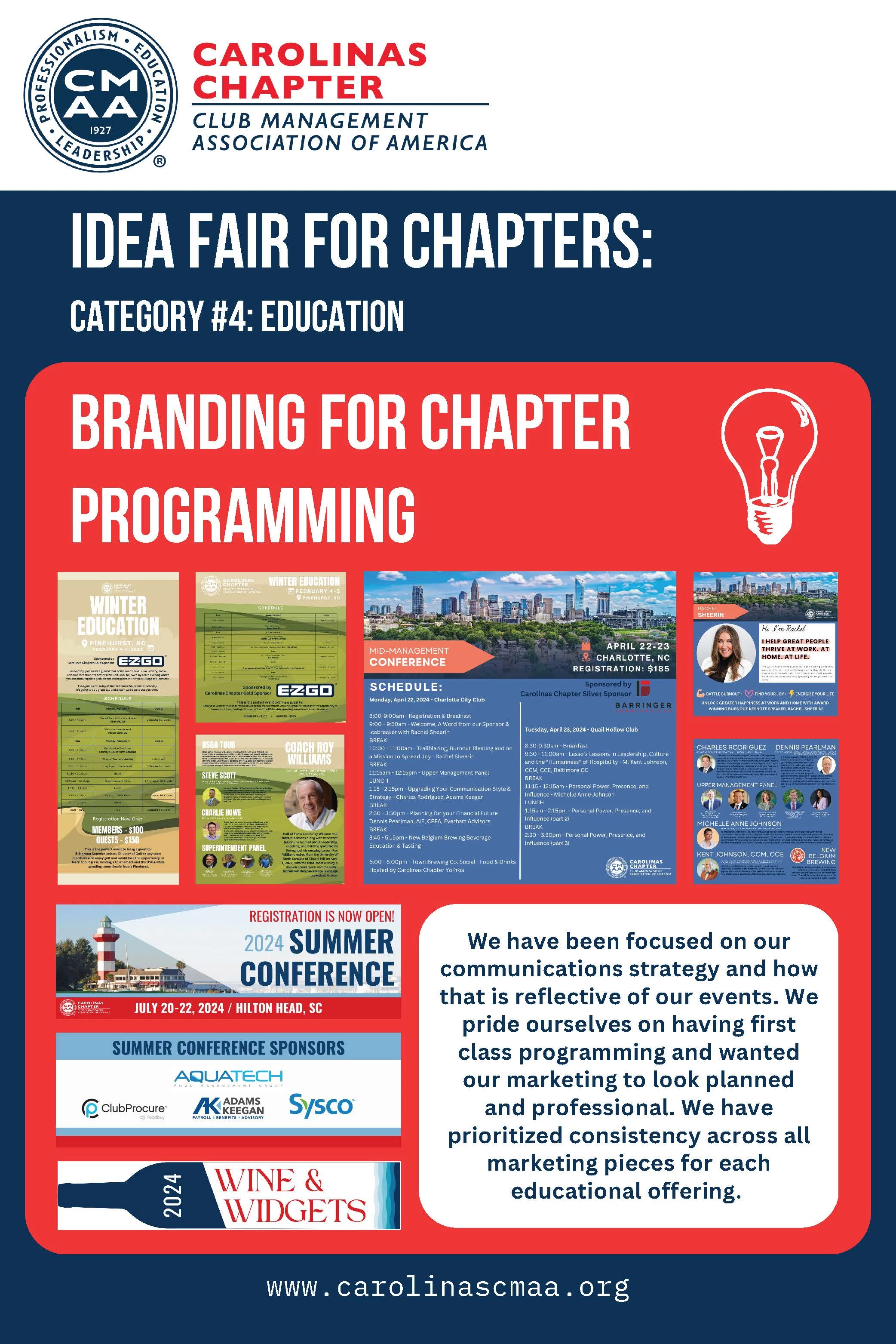 We have created a theme and branding for each of our Carolinas Chapter programs. It has enhanced our chapter by upgrading our communications and matching the quality of the communication with that of the education.