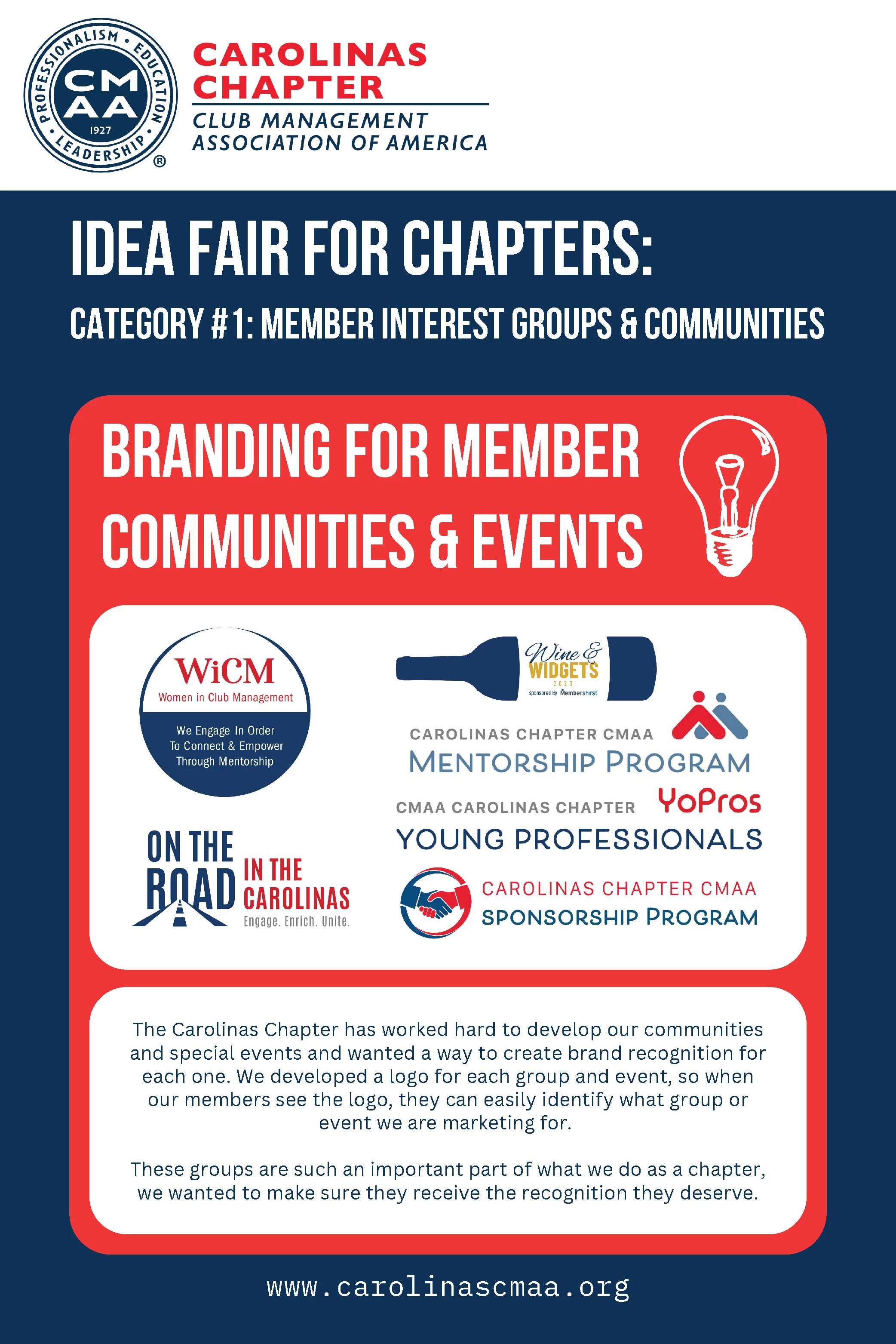 This idea has enhanced our chapter by creating additional branding opportunities for the communities and special events we have worked hard to develop and maintain. We have created brand recognition for each of these groups and events that our members have become familiar with and are easily able to identify what types of events we are marketing.