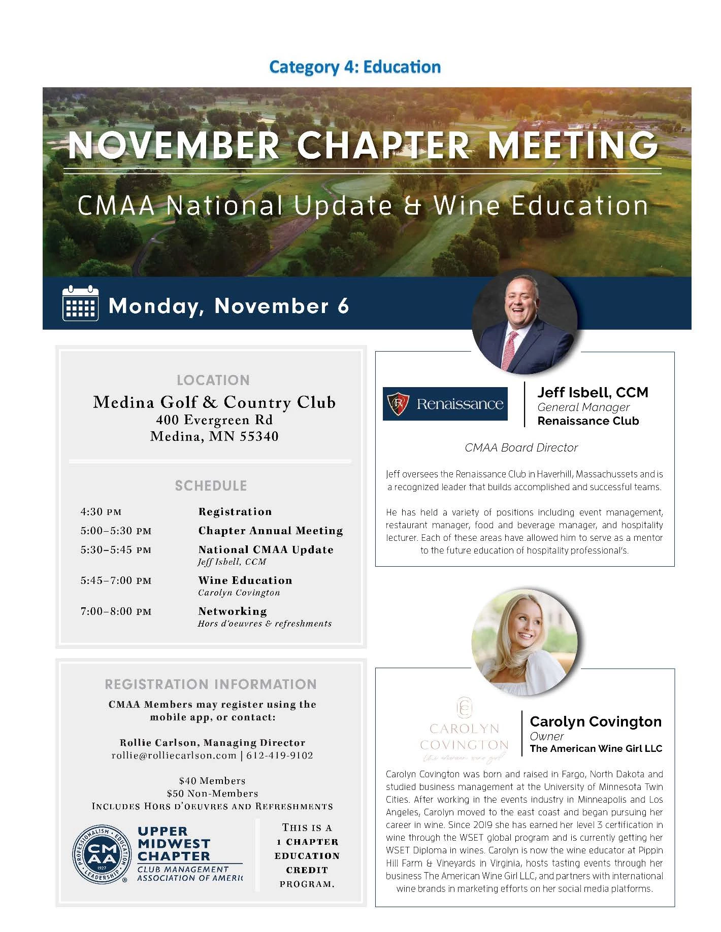 Chapter Annual Meeting, CMAA Update & Wine Education