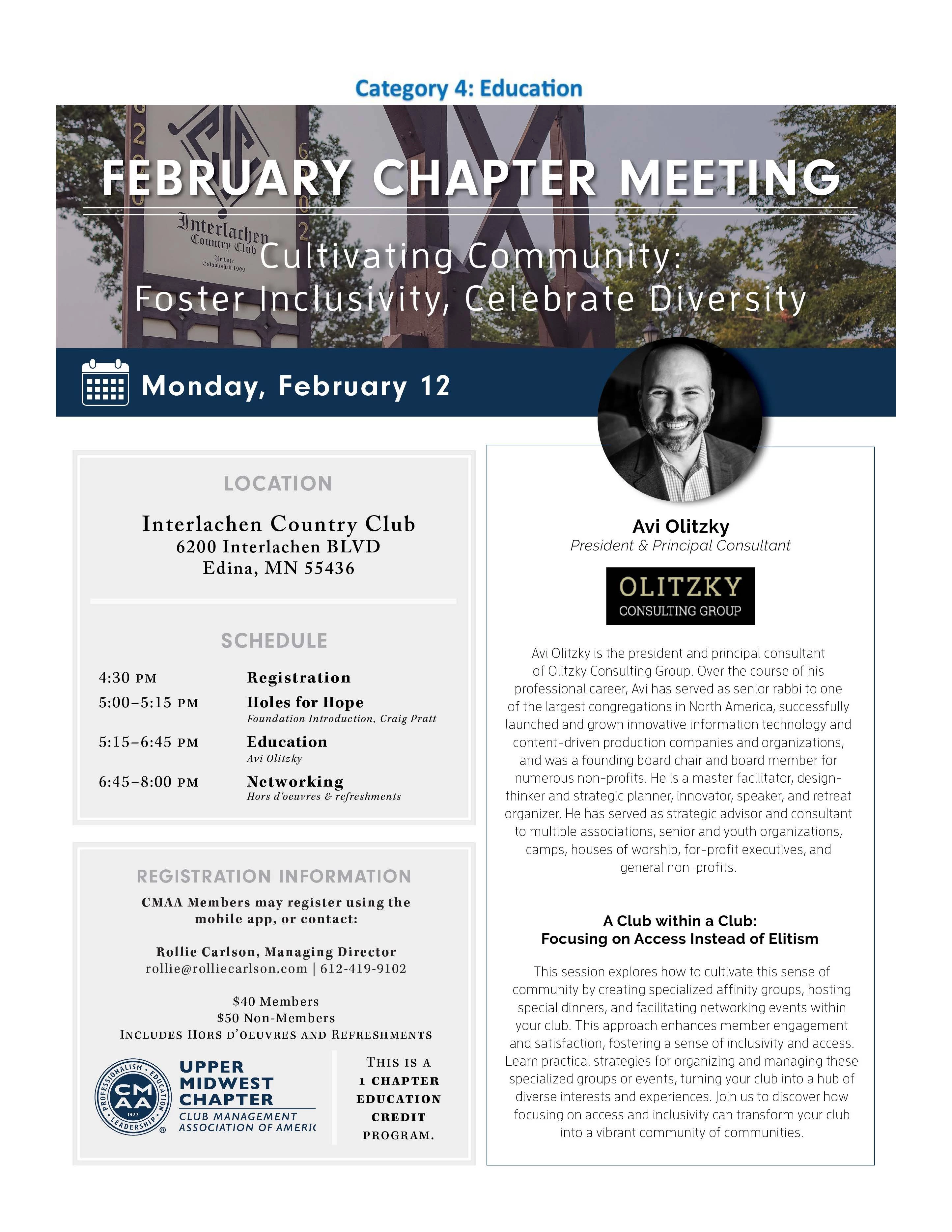 Speaker Avi Olitzky encouraged Chapter member attendees and their attending staff members to implement this concept at their clubs. The Q&A session following the presentation explored tactics of implementation at many of the clubs attending representatives.