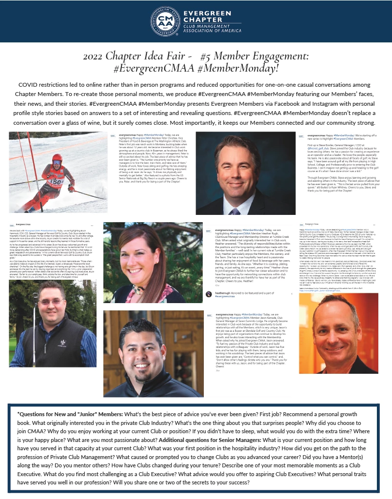 COVID restrictions led to online rather than in person programs and reduced opportunities for one-on-one casual conversations among Chapter Members. To re-create those personal moments, we produce #EvergreenCMAA #MemberMonday featuring our Members’ faces, their news, and their stories. #EvergreenCMAA #MemberMonday doesn’t replace a conversation over a glass of wine, but it surely comes close. Most importantly, it keeps our Members connected and our community strong.