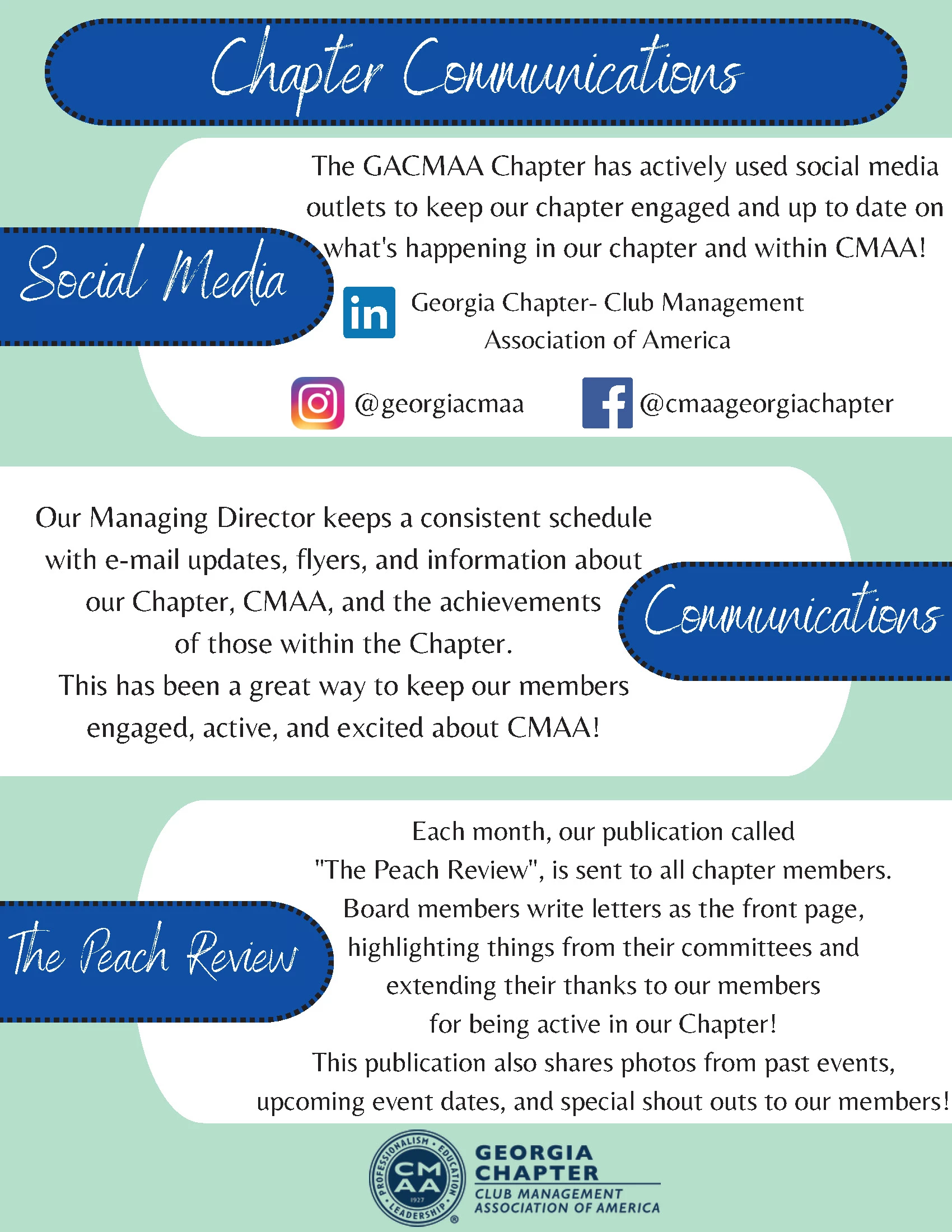Expansion of communication options. Our chapter members appreciate seeing announcements through various forms of communication. We are consistent with sending announcements throughout all forms of media, pictures included. The membership has come to expect it and based on their participation, appreciates it. Success.