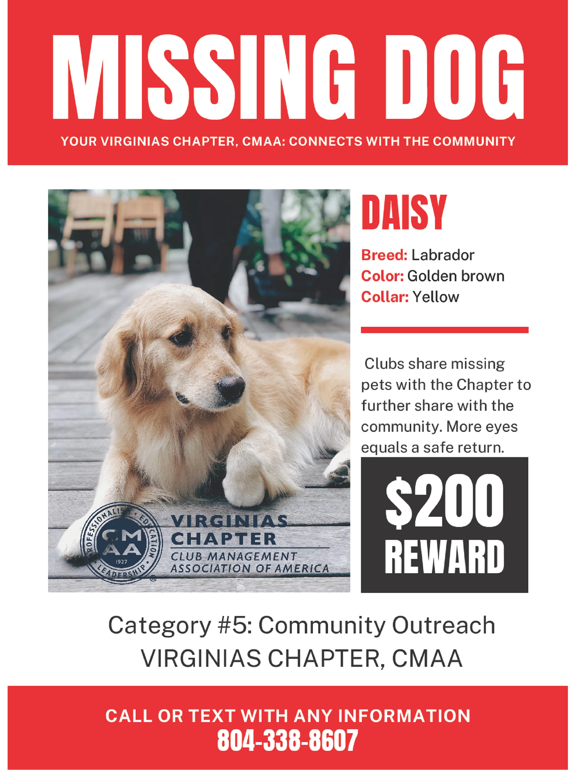 It started with a local manager sharing his lost pet's missing information and now is an opportunity to be inclusive of all clubs who share on behalf of their members. We have established a Community Committee where volunteers are pulling together to best spread the news of the missing pet. A simple concept, but a big help to those in need.
