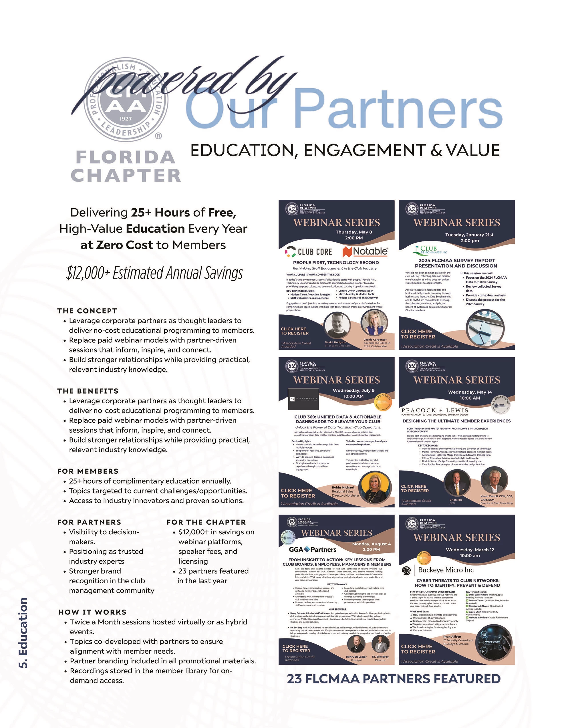 Our partner-driven education program has been a game-changer for the Florida Chapter. By replacing the old paid webinar model with 25+ hours of complimentary, high-value sessions, we’ve delivered $12,000+ in annual savings while giving members direct access to industry leaders and fresh solutions. It’s built stronger ties with our partners, boosted engagement across the chapter, and created a year-round stream of education that informs, inspires, and connects.