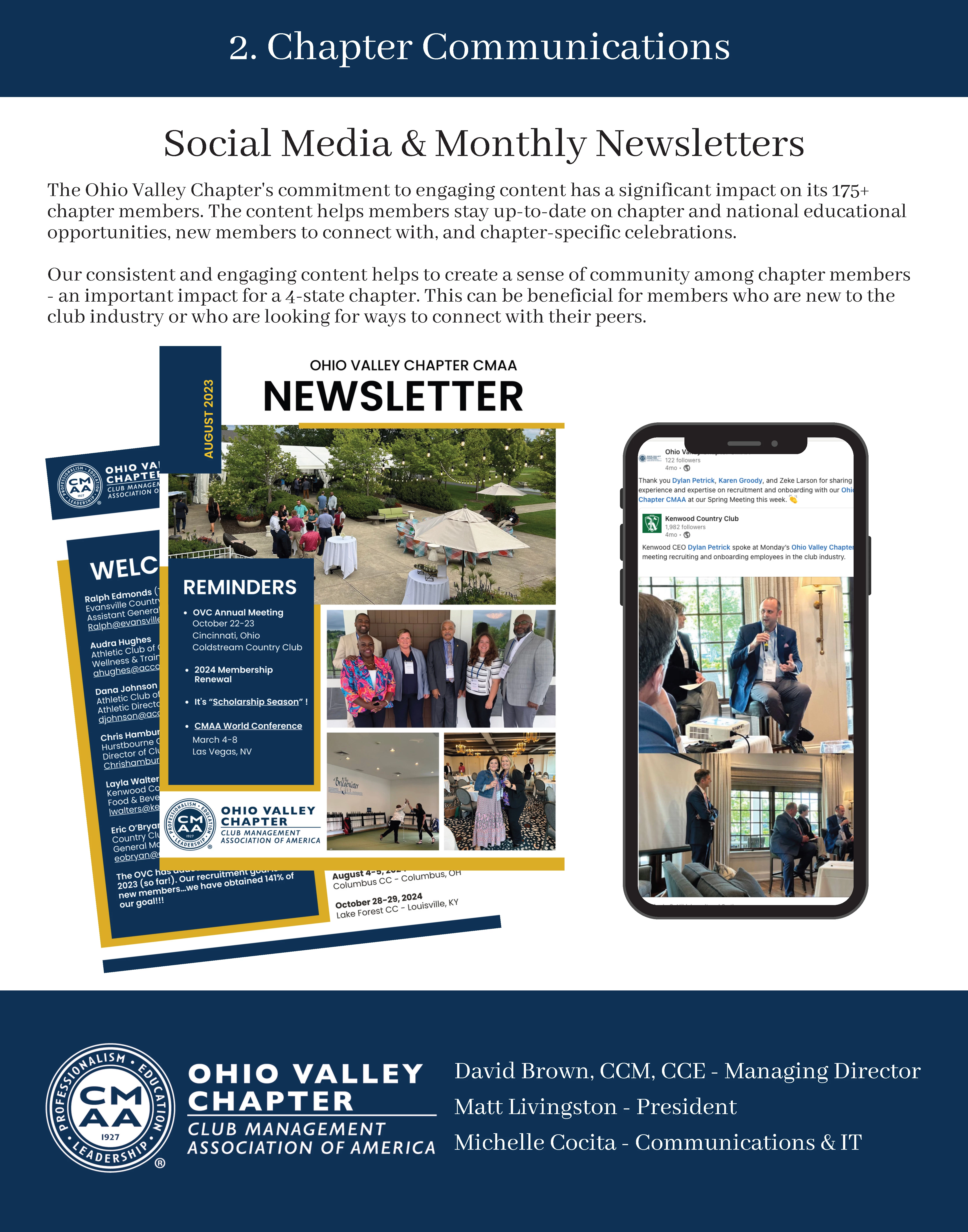 Our consistent and engaging content helps to create a sense of community among chapter members - an important impact for a 4-state chapter. This can be beneficial for members who are new to the club industry or who are looking for ways to connect with their peers.