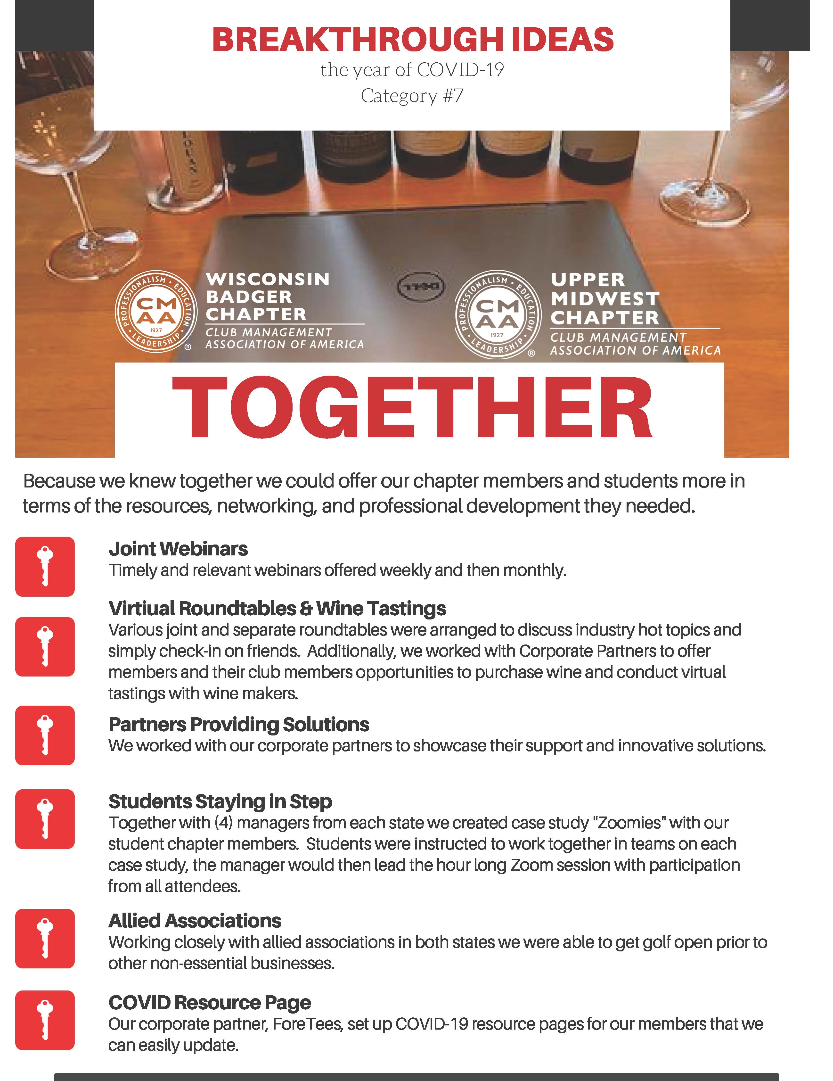 Various joint and separate roundtables were arranged to discuss industry hot topics and simply check-in on friends. Additionally, we worked with Corporate Partners to offer members and their club members opportunities to purchase wine and conduct virtual tastings with winemakers.