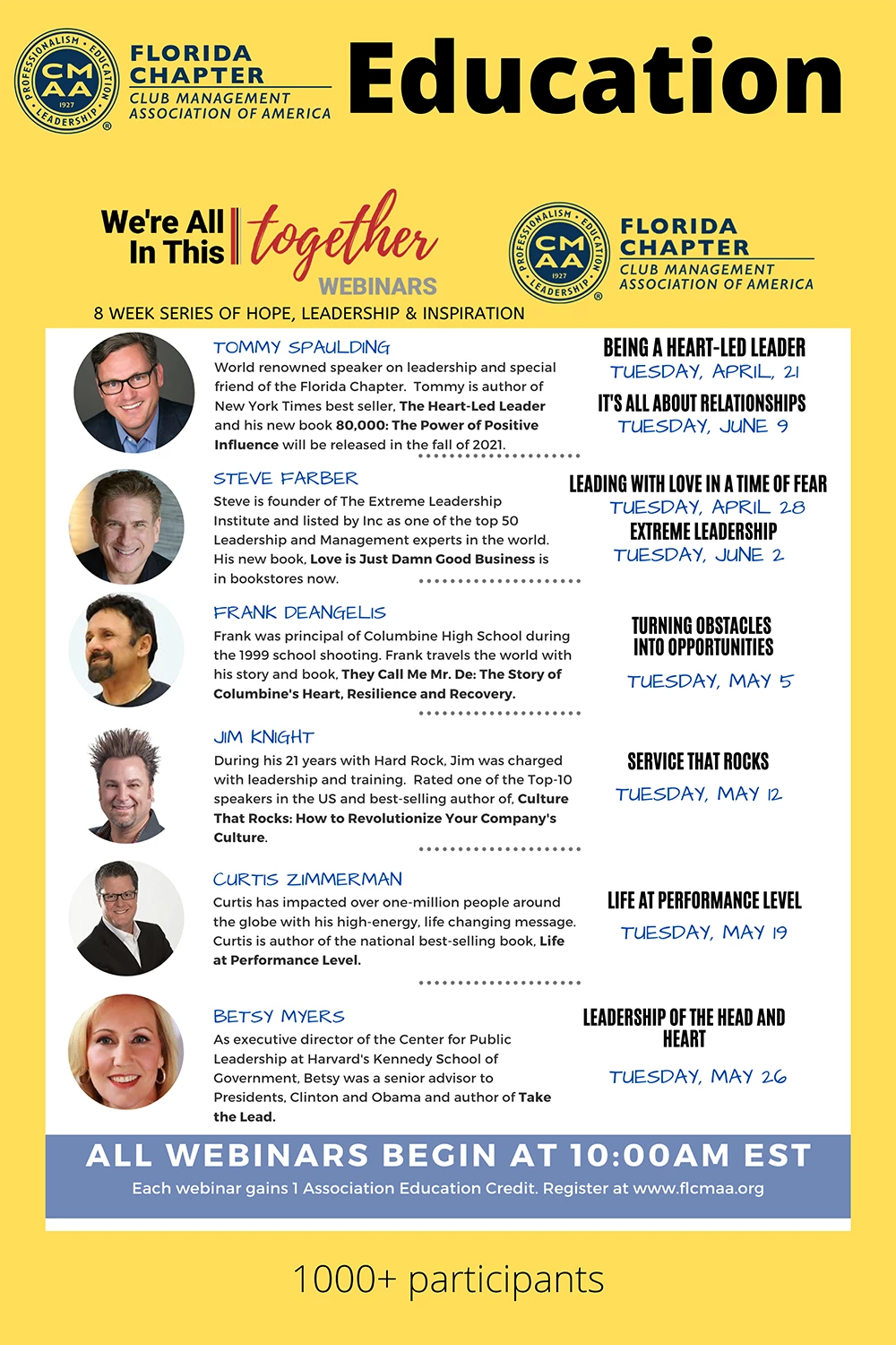 The We're All In This Together webinar program was an 8 week program that allowed our members to have access to the quality of speakers they have come to expect from the Chapter.