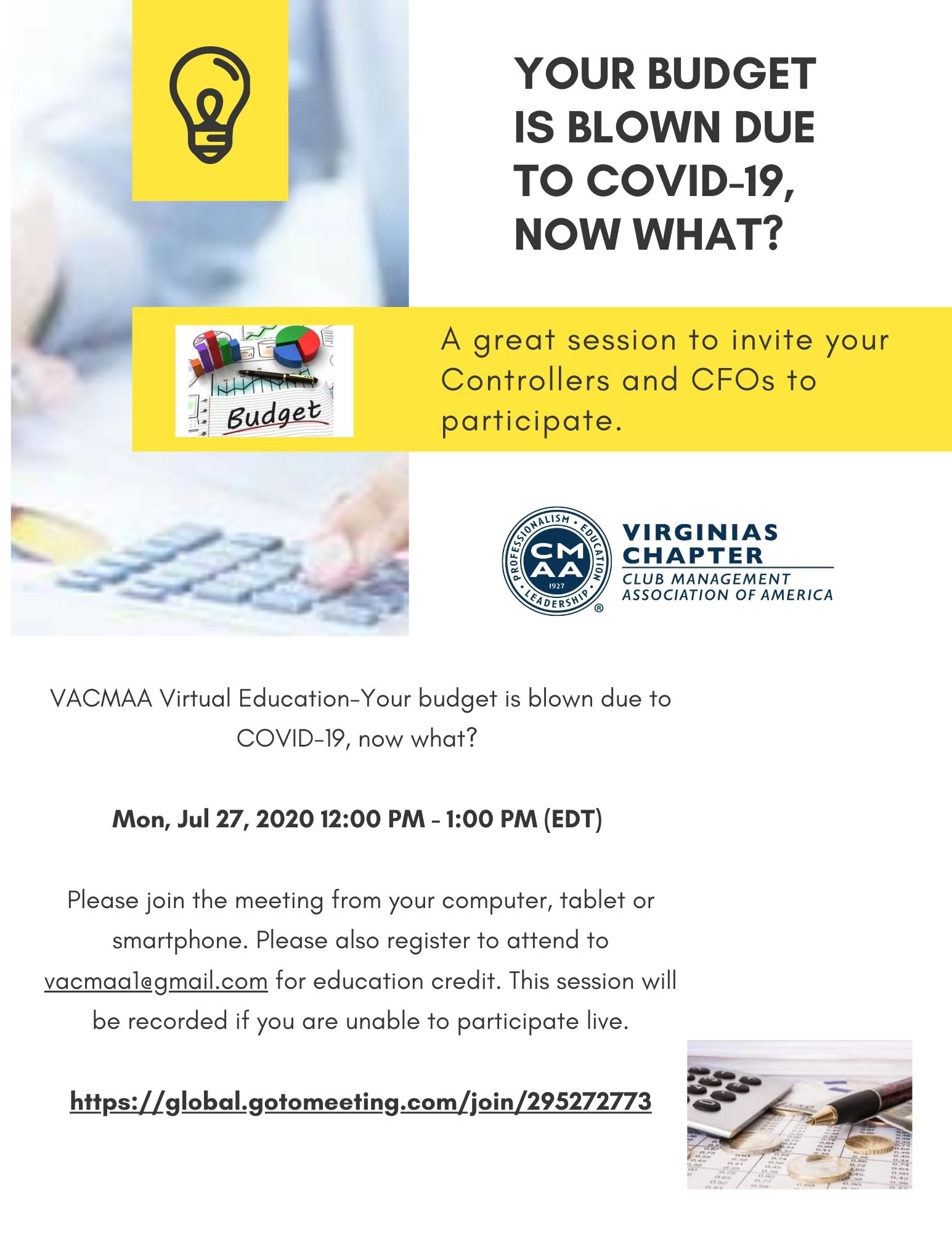 This education session "Your budget is blown due to COVID-19, now what? " was presented and prepared by one of our female Chapter leaders, Julie Brown. This was an excellent program for all, but also for Women in Club Management. It was a great session to engage other female leaders and other CFO's and Controllers.