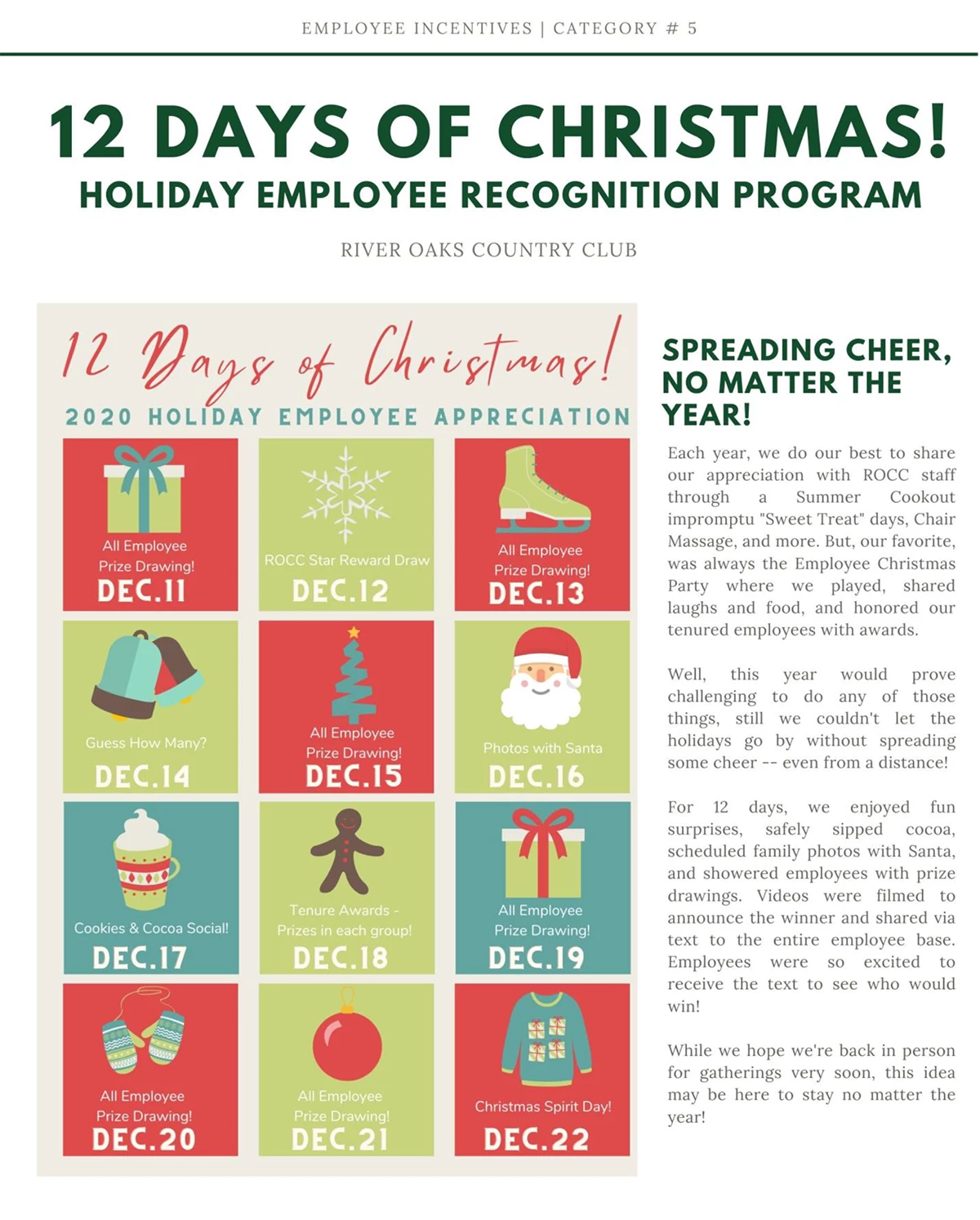 For 12 days, we enjoyed fun surprises, safely sipped cocoa, scheduled family photos with Santa, and showered employees with prize drawings. Videos were filmed to announce the winner and shared via text to the entire employee base. Employees were so excited to receive the text to see who would win!