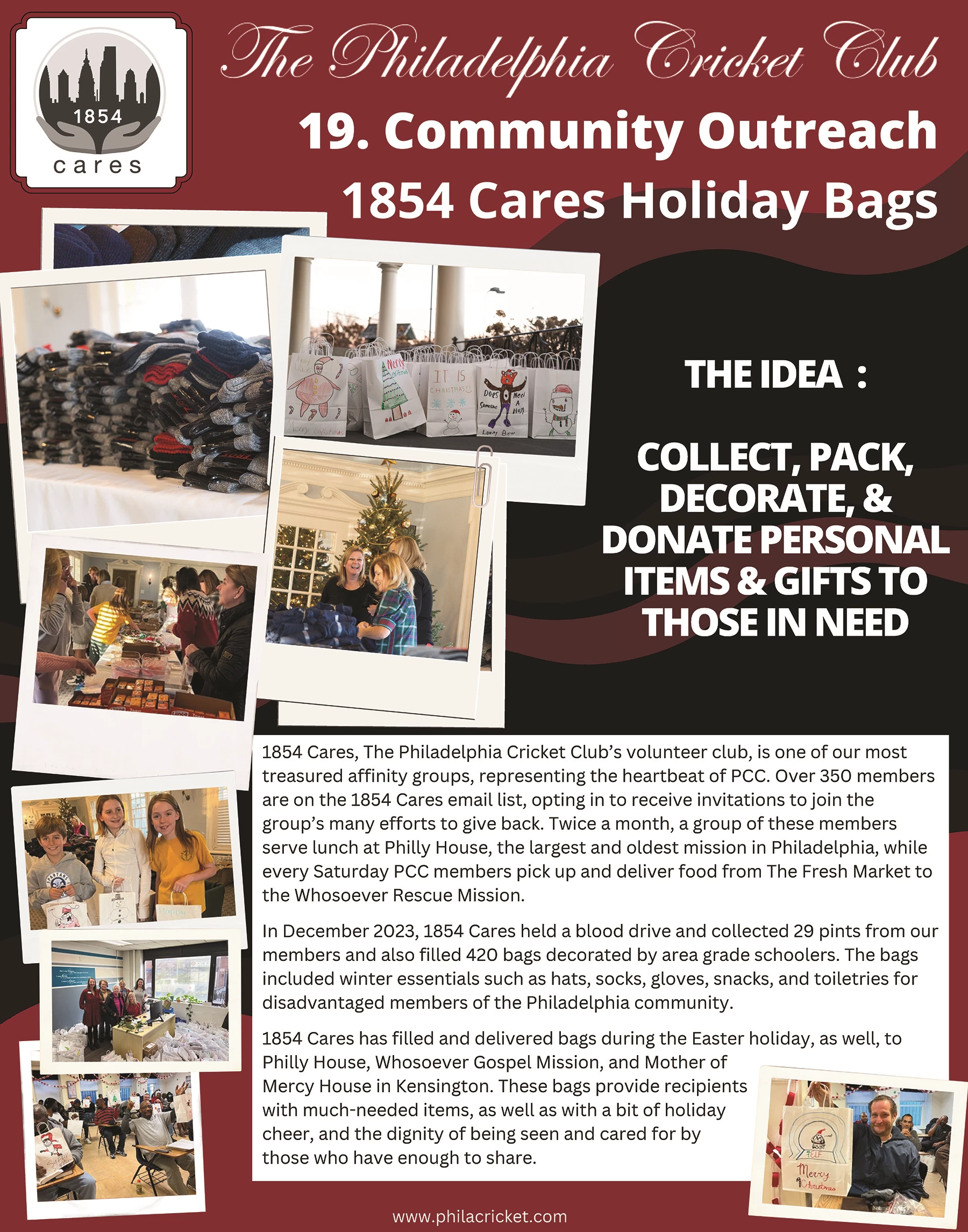 1854 Cares, The Philadelphia Cricket Club’s volunteer club, is one of our most treasured affinity groups, representing the heartbeat of PCC. Over 350 members are on the 1854 Cares email list, opting in to receive invitations to join the group’s many efforts to give back.