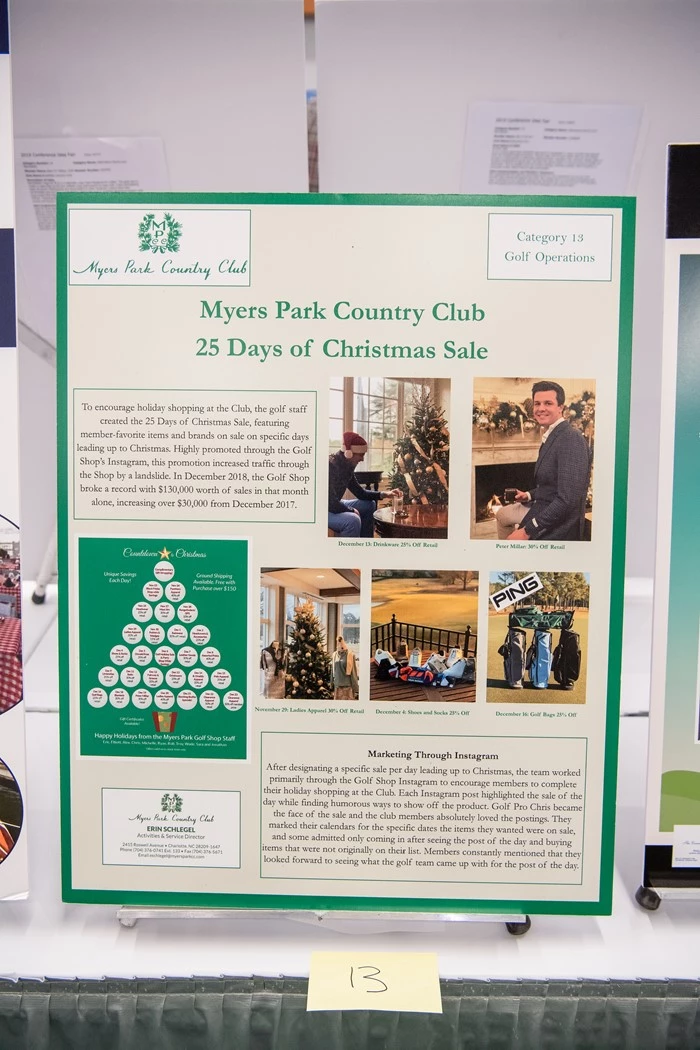 To encourage holiday shopping at the Club, the golf staff created the 25 Days of Christmas, featuring member-favorite items and brands on sale on specific dates leading up to Christmas. Highly promoted through the golf shop’s Instagram, this promotion increased traffic through the golf shop by a landslide. In December 2018, the golf shop broke a record with $130,000 of sales in that month alone, increasing over $30,000 from December 2017.
