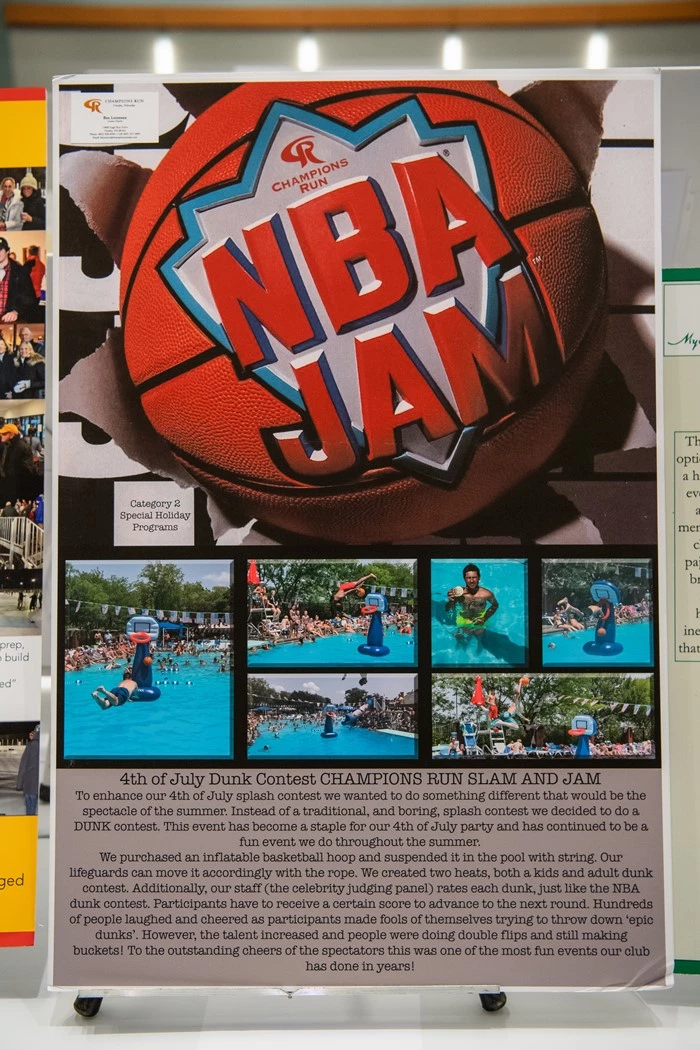 We purchased an inflatable basketball hoop and suspended it in the pool with string. Our lifeguards can move it accordingly with the rope. We have Both a kids dunk contest and an adults dunk contest. Additionally, our staff (the celebrity judging panel) rates each dunk, just like the NBA dunk contest. Participants have to receive a certain score to advance to the next round. Hundreds of people laughed and cheered as participants made fools of themselves trying to throw down ‘epic dunks’. However, the talent increased and people were doing double flips and still making buckets! To the outstanding cheers of the spectators this was one of the most fun events our club has done in years!