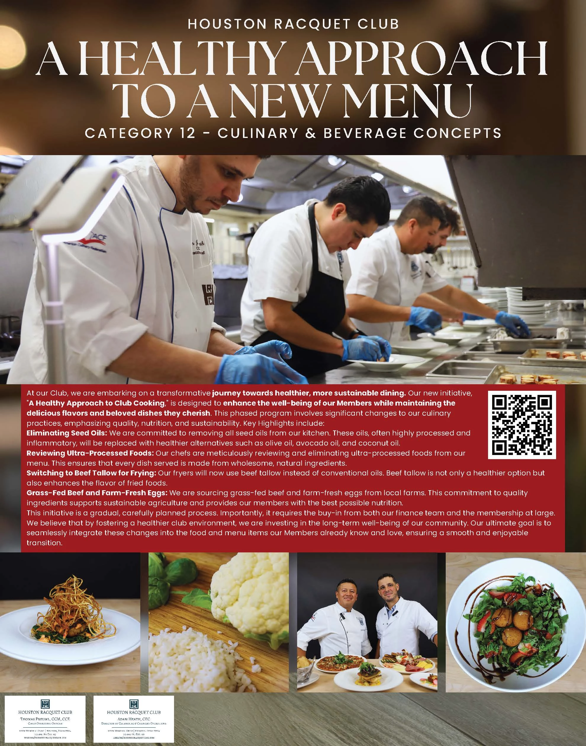 At our Club, we are embarking on a transformative journey towards healthier, more sustainable dining. Our new initiative, "A Healthy Approach to Club Cooking," is designed to enhance the well-being of our Members while maintaining the delicious flavors and beloved dishes they cherish. This phased program involves significant changes to our culinary practices, emphasizing quality, nutrition, and sustainability.