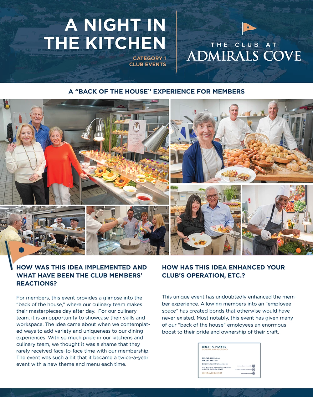 This unique event has undoubtedly enhanced the member experience. Allowing members into an “employee space” has created bonds that otherwise would have never existed. Most notably, this event has given many of our “back of the house” employees an enormous boost to their pride and ownership of their craft.