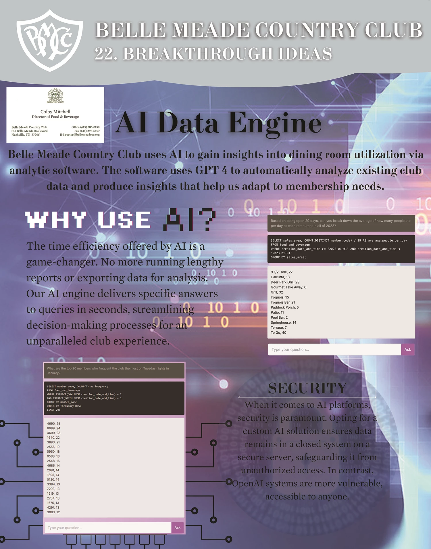 We have been able to pinpoint F&B related information in seconds by downloading the clubs F&B data to the AI engine. It has saved us plenty of time and has solved many questions during a construction period for the club.
