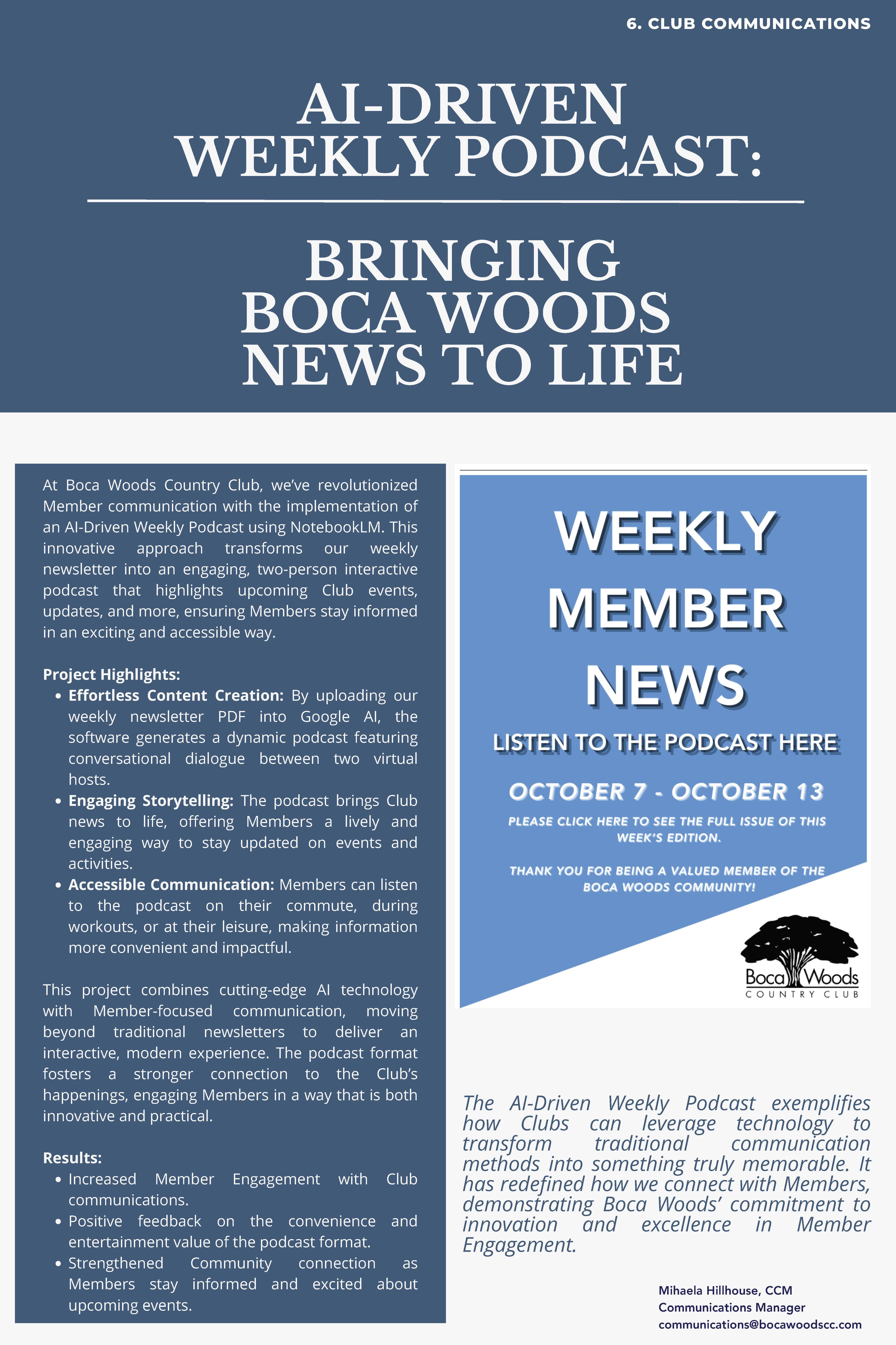 This innovation converted static weekly newsletters into dynamic, interactive podcasts, bringing club updates to life through engaging conversations between AI-generated virtual hosts.