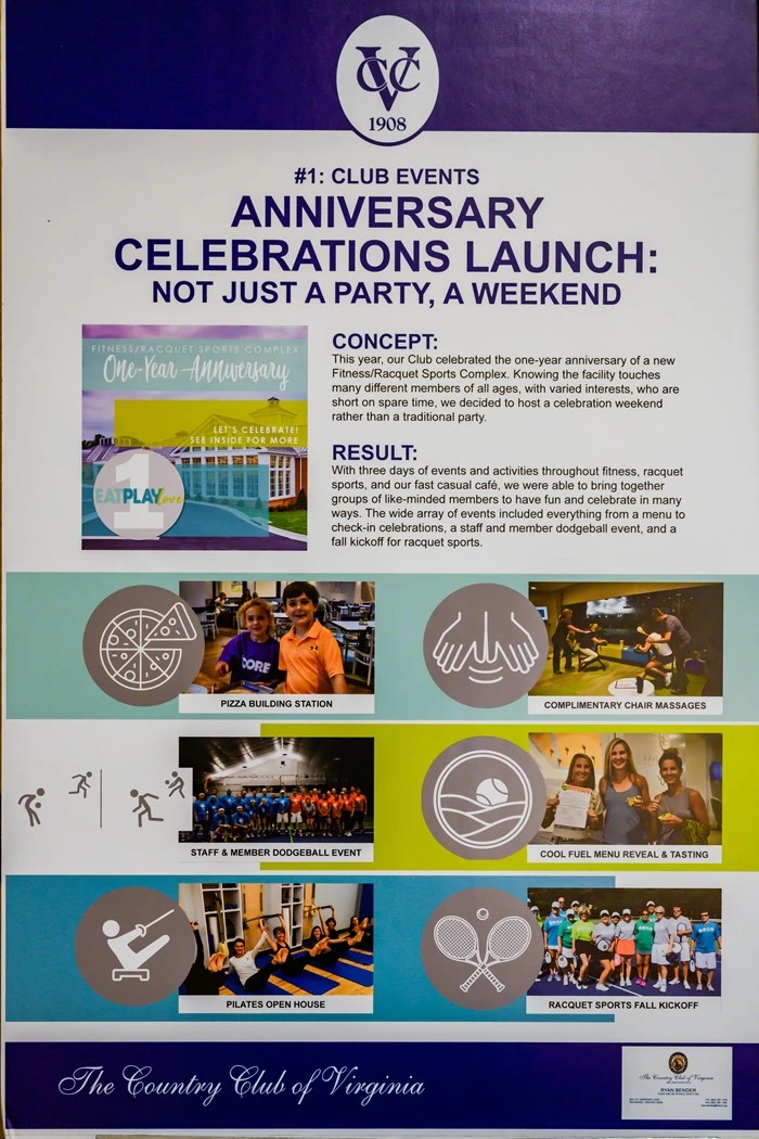 This year, our Club celebrated the one-year anniversary of a new Fitness/Racquet Sports Complex. Knowing the facility touches many different members of all ages, with varied interests, who are short on spare time, we decided to host a celebration weekend rather than a traditional party. The celebration as a whole was themed “Eat, Play, Love” – a nod to the many different ways members can enjoy the complex.