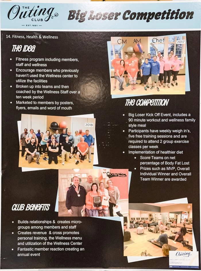 A Wellness and Fitness program that includes members and staff teams. These teams compete with in-house trainers as their leaders to promote existing member's to start using the wellness center, trainers, and group exercise. Designed for members that are over-weight and first time users. The event enhances club operations by creating micro-groups of members who become friends and new users of the Wellness programs. Which is member retention and value added. The overall goal creating lifetime members of the club’s Wellness Center. Prizes for winning teams and individuals vary and is based on net percentage of body fat lost, attending group exercise classes. The crossover of healthy dinning and focus also benefits operations. The employee involvement also engages entire membership as the non-competing member's root for their favorite employee that could not hurt in shedding some pounds. Employee wellness benefiting health insurance claims for and using management leading by example.