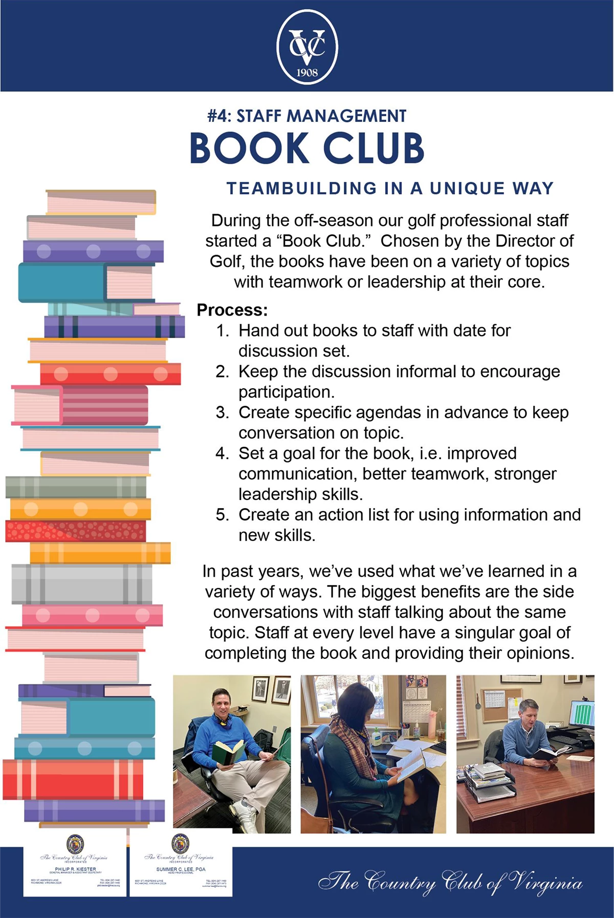 During the off-season, our golf professional staff started a book club for teambuilding among the staff. The books were chosen by our Director of Golf and have been on a variety of topics, all with teamwork or leadership at their core.