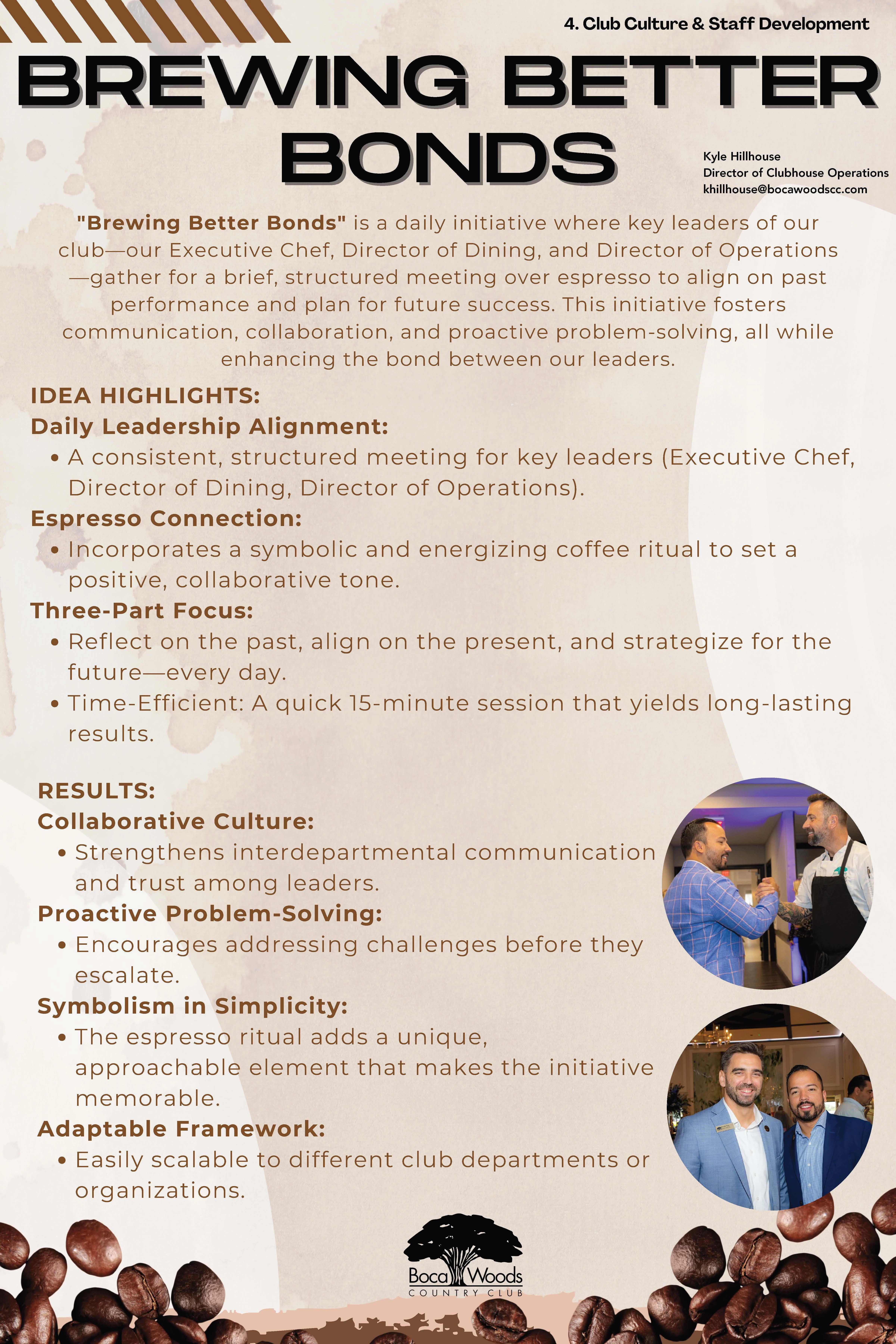 Daily leadership alignment meetings fostered collaboration and proactive problem-solving, all centered around a symbolic espresso ritual that encouraged camaraderie.