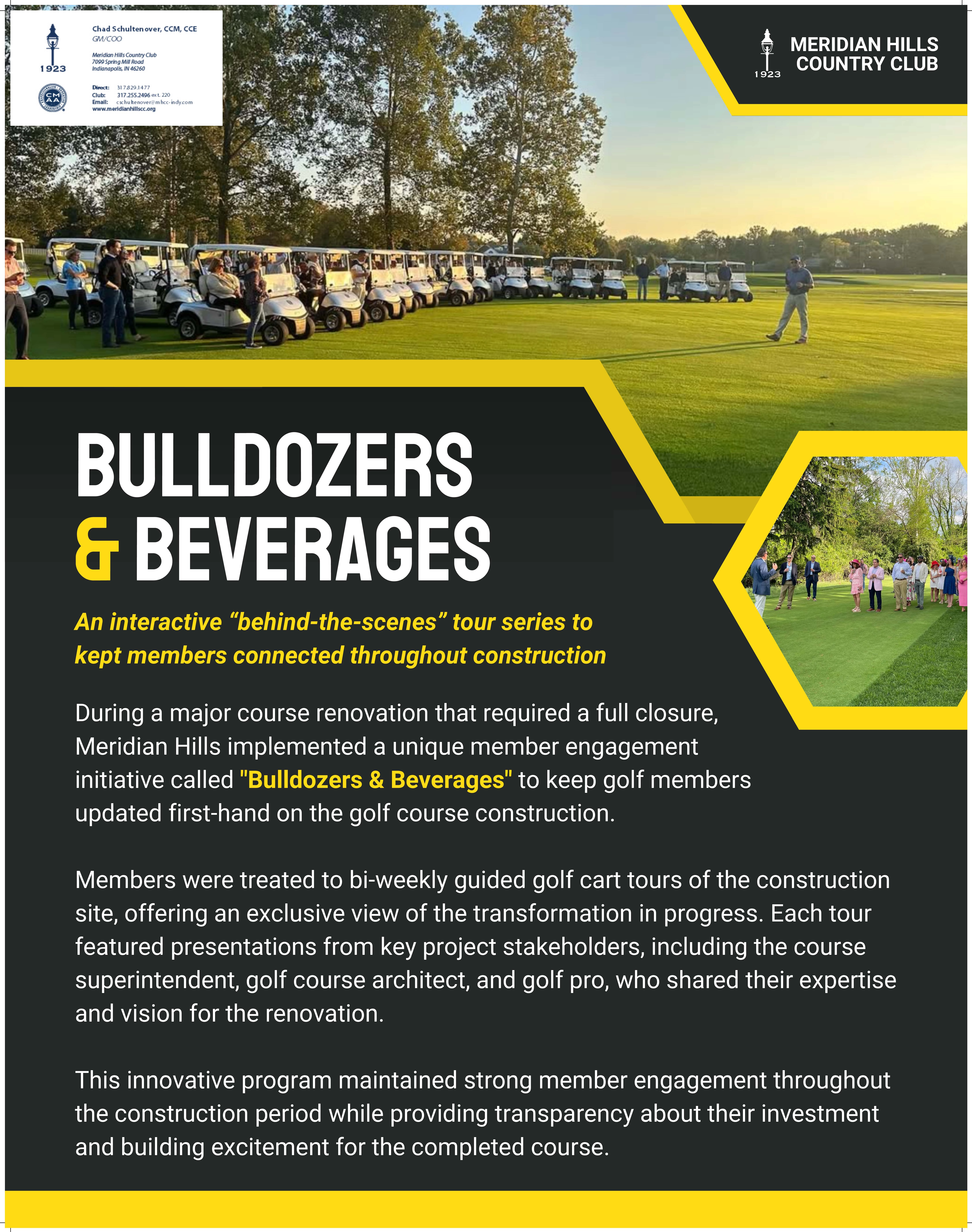 The idea was to find a way to keep members engaged during a golf course construction project beyond emails and newsletters. We wanted members to have regular access to professionals to see, touch, and ask questions about their course during the construction. This approach provided members a first-hand experience while seeing the construction going on around them. Great questions were asked, stories told, and a lot of excitement was generated.
