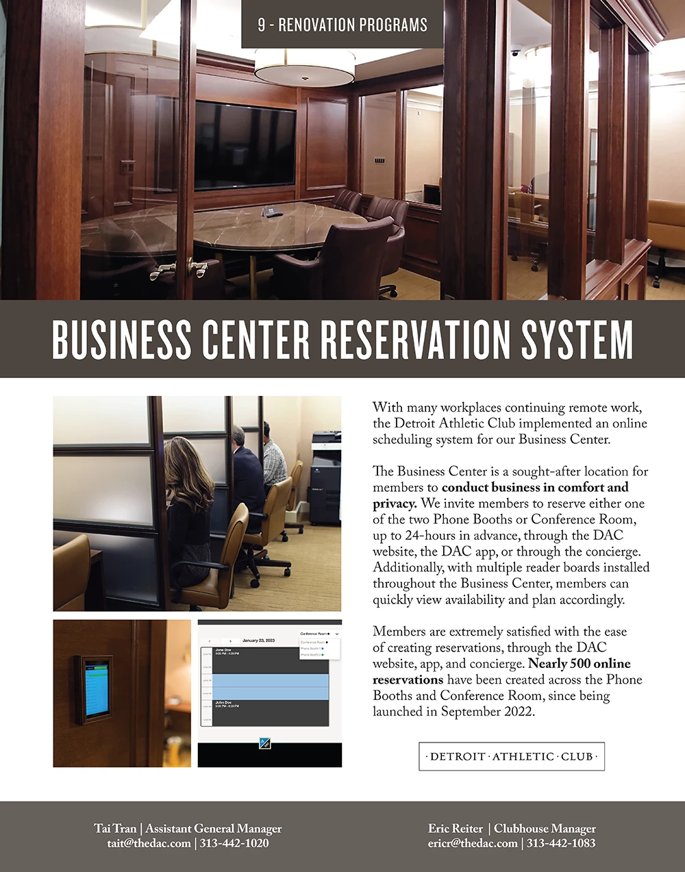With many workplaces continuing remote work, the Detroit Athletic Club implemented an online scheduling system for our Business Center. This has created more order and reliability for members using this area to work.
