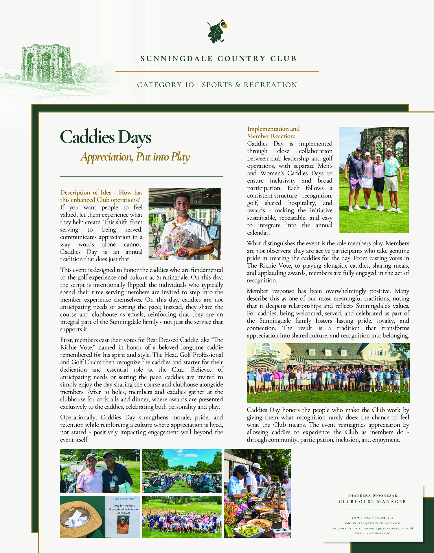Caddies Day is implemented through close collaboration between club leadership and golf operations, with separate Men’s and Women’s Caddies Days to ensure inclusivity and broad participation. Each follows a consistent structure - recognition, golf, shared hospitality, and awards - making the initiative sustainable, repeatable, and easy to integrate into the annual calendar.