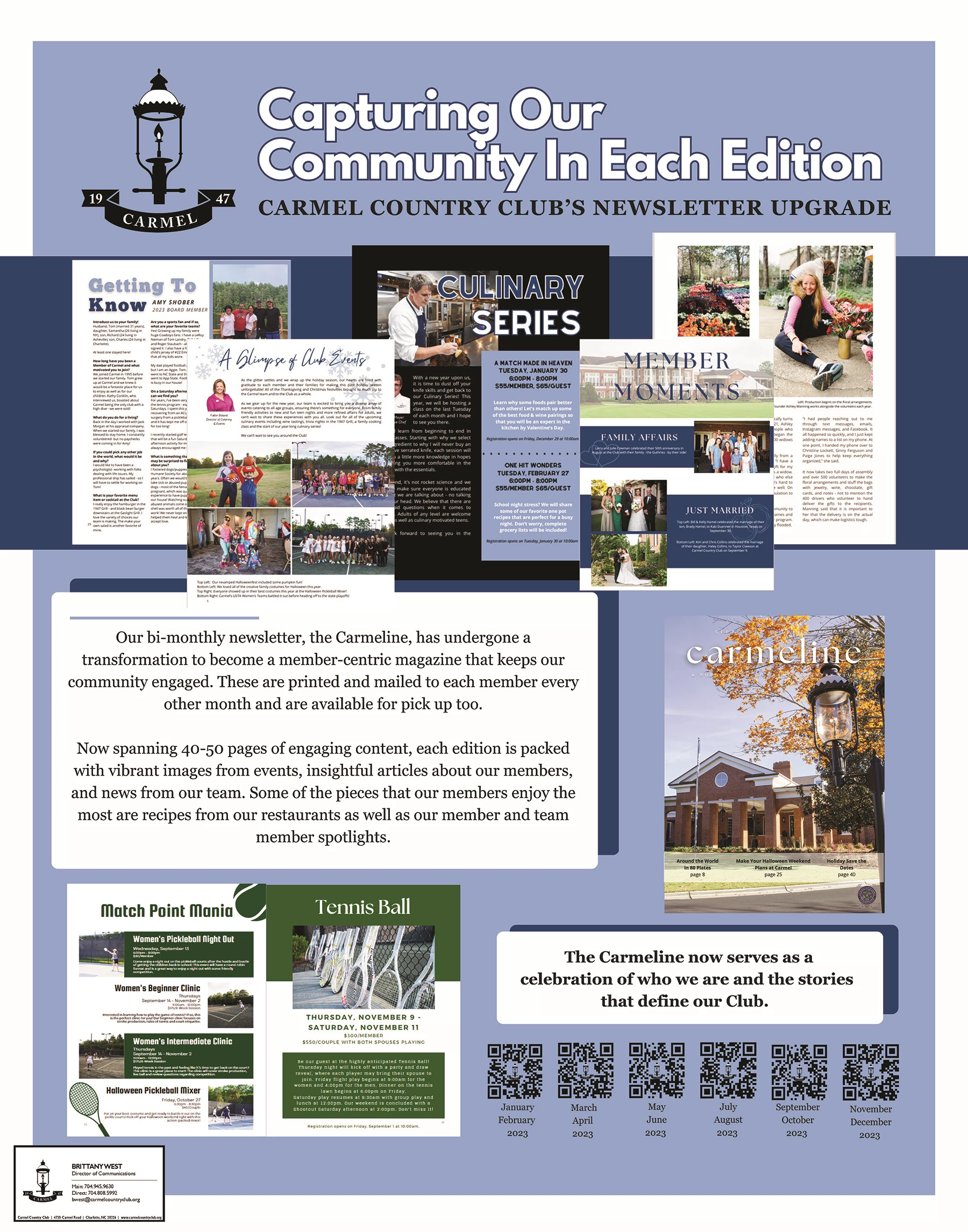 The transformation of the Carmeline has helped to create engaging content for our members to read along with solidifying event branding across all platforms in the Club. With letters from our teams, articles on our members and their accomplishments, and high-quality photographs, the upgraded format has helped to create a sense of community within our Club.