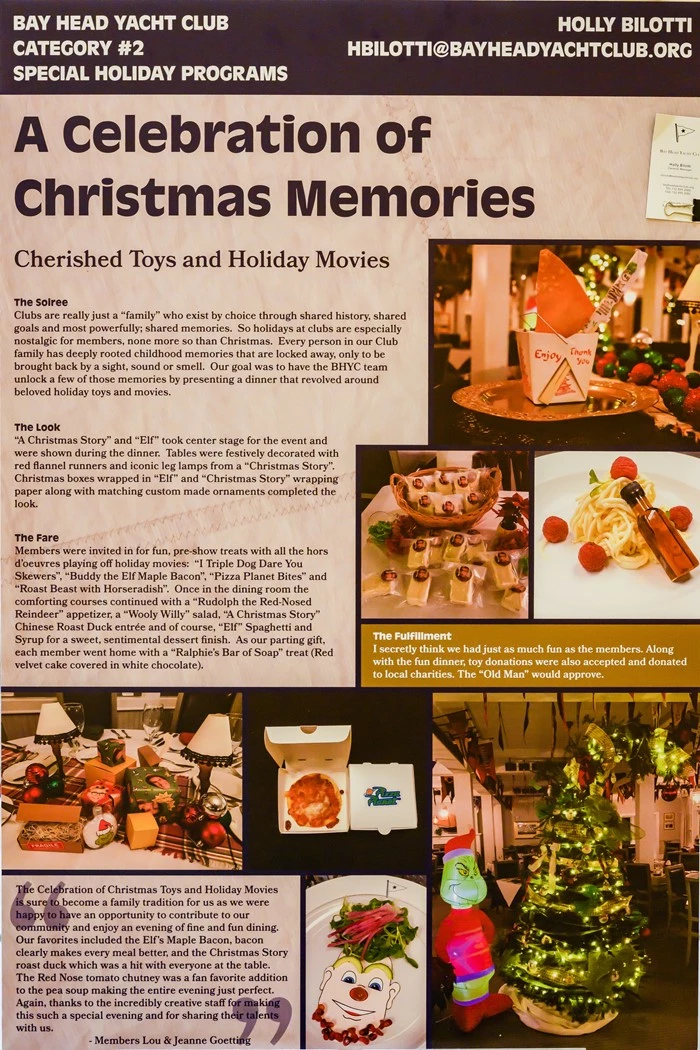 The dining room and tables were cleverly decorated with props from holiday movies to build the ambiance in the room. The kitchen used creative plating and based the entire menu around holiday movies and toys. Members had a wonderful time reminiscing about holidays they had spent at the club in the past. Many of the members hoped that the event will become a mainstay on the calendar so they could bring family and guests to the event in the future.