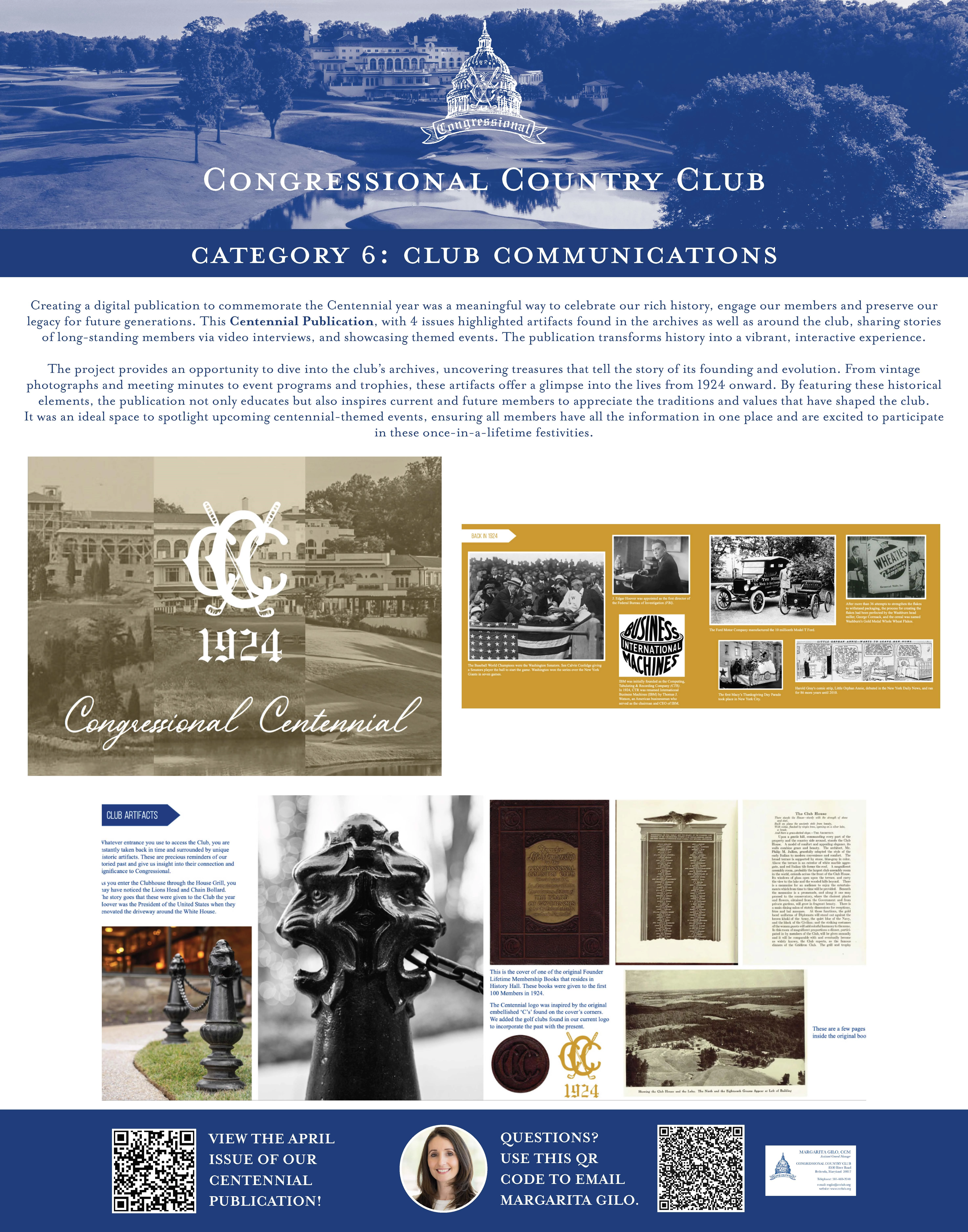 Creating a digital publication to commemorate the Centennial year was a meaningful way to celebrate our rich history, engage our members and preserve our legacy for future generations. The publication transforms history into a vibrant, interactive experience. By featuring these historical elements, the publication not only educates but also inspires current and future members to appreciate the traditions and values that have shaped the club. It was an ideal space to spotlight upcoming centennial-themed events, ensuring all members have all the information in one place and are excited to participate in these once-in-a-lifetime festivities.