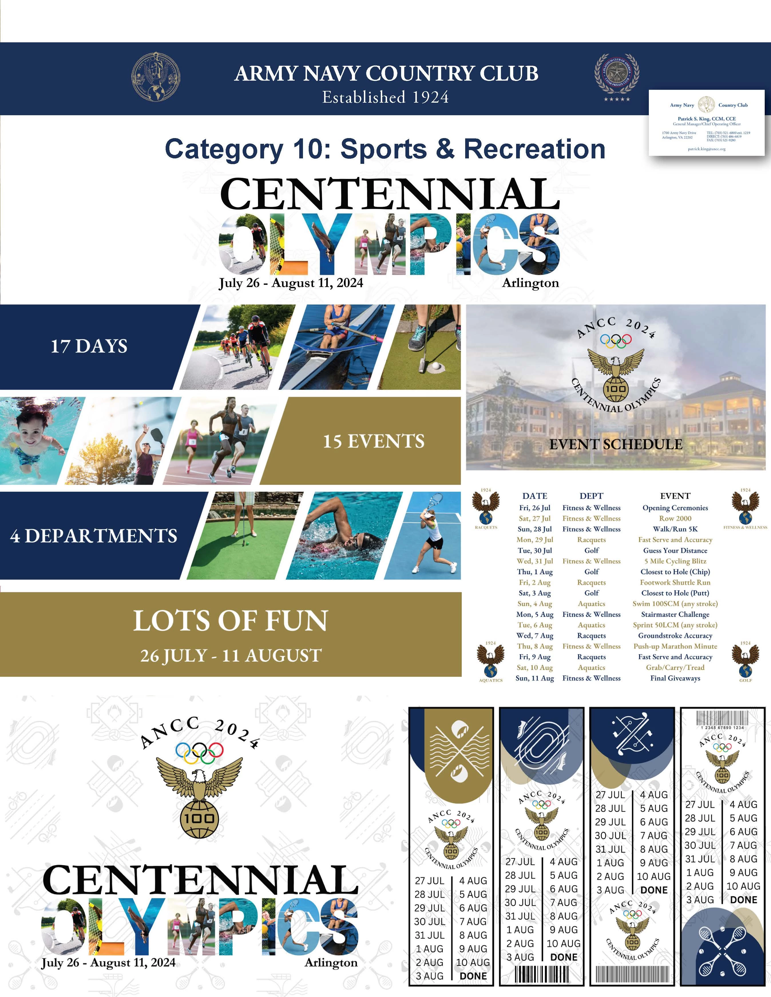 The Centennial Olympics coincided with the actual Paris Olympics. We organized mini-events in each activity department (fitness, aquatics, racquets, and golf) for members to participate in. The number of events a member participated in determined the number of prizes they could earn.