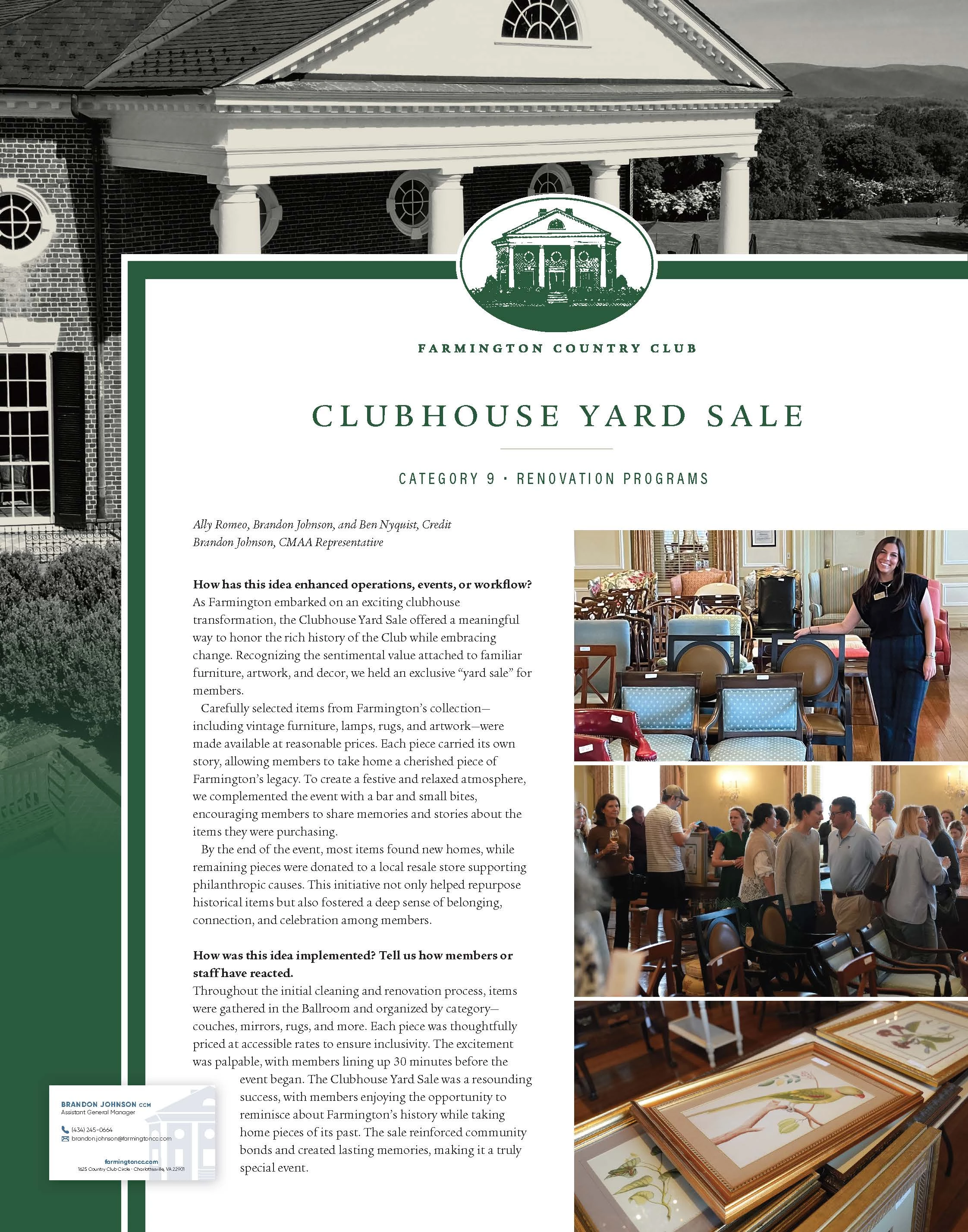 As Farmington embarked on an exciting clubhouse transformation, the Clubhouse Yard Sale offered a meaningful way to honor the rich history of the Club while embracing change. Recognizing the sentimental value attached to familiar furniture, artwork, and decor, we held an exclusive “yard sale” for members.