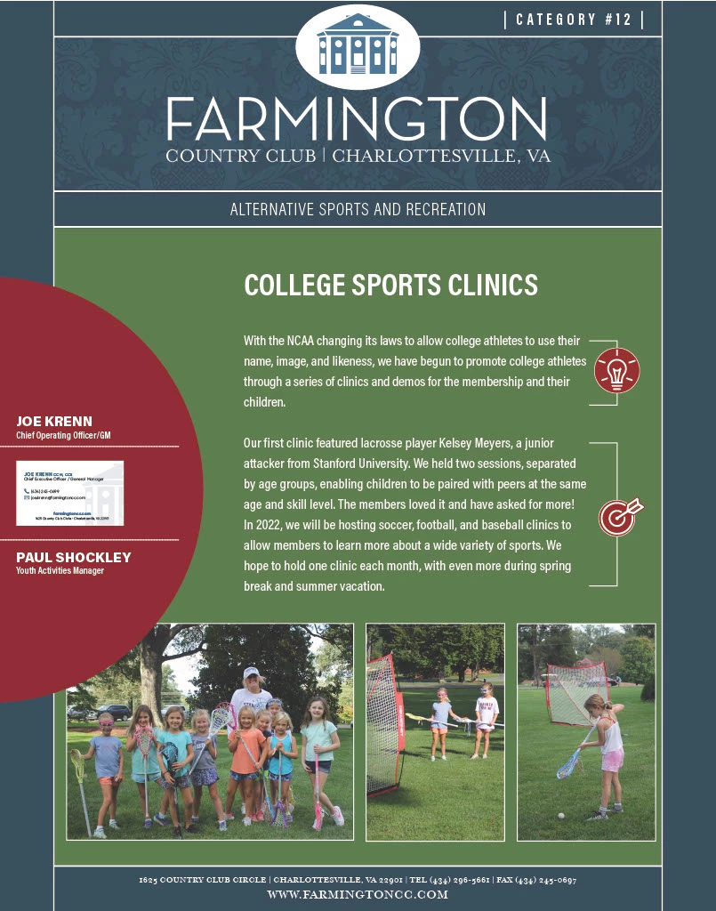 With the NCAA changing its laws to allow college athletes to use their name, image, and likeness, we have begun to promote college athletes through a series of clinics and demos for the membership and their children.