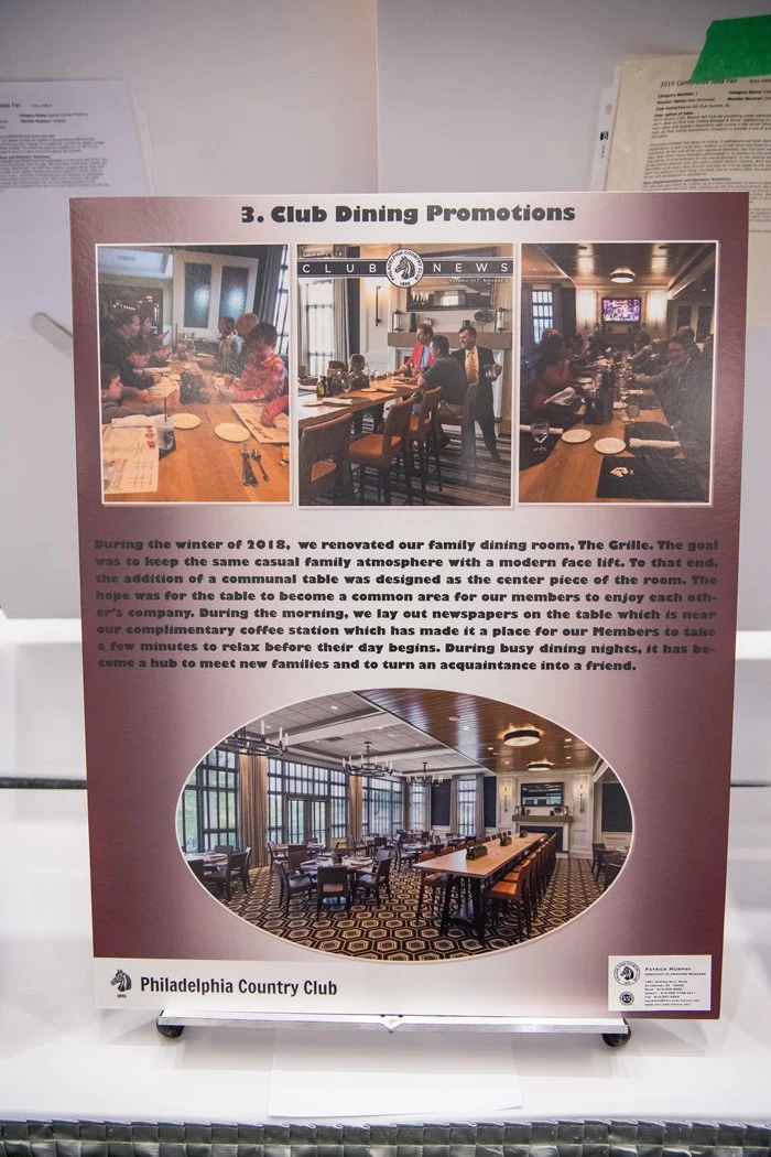 During the winter of 2018, we renovated our family dining room, The Grille. The goal was to keep the same casual family atmosphere with a modern face lift. To that end, the addition of a communal table was designed as the center piece of the room. The hope was for the table to become a common area for our members to enjoy each other’s company. During the morning, we lay out newspapers on the table which is near our complimentary coffee station which has made it a place for our Members to take a few minutes to relax before their day begins. During busy dining nights, it has become a hub to meet new families and to turn an acquaintance into a friend.